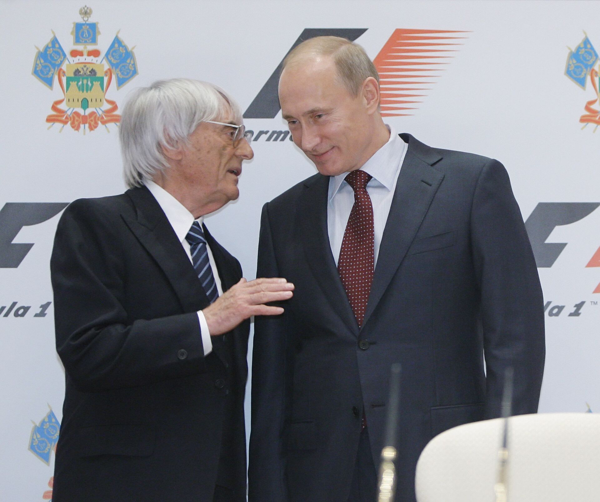 Tras entrevistarse con Ecclestone, Putin señaló satisfecho que el cierre del contrato pone fin a varias décadas de negociaciones iniciadas aún en los tiempos de la Unión Soviética. En la foto: el primer ministro de Rusia, Vladímir Putin, y el director general del grupo Formula One, Bernard Ecclestone.
