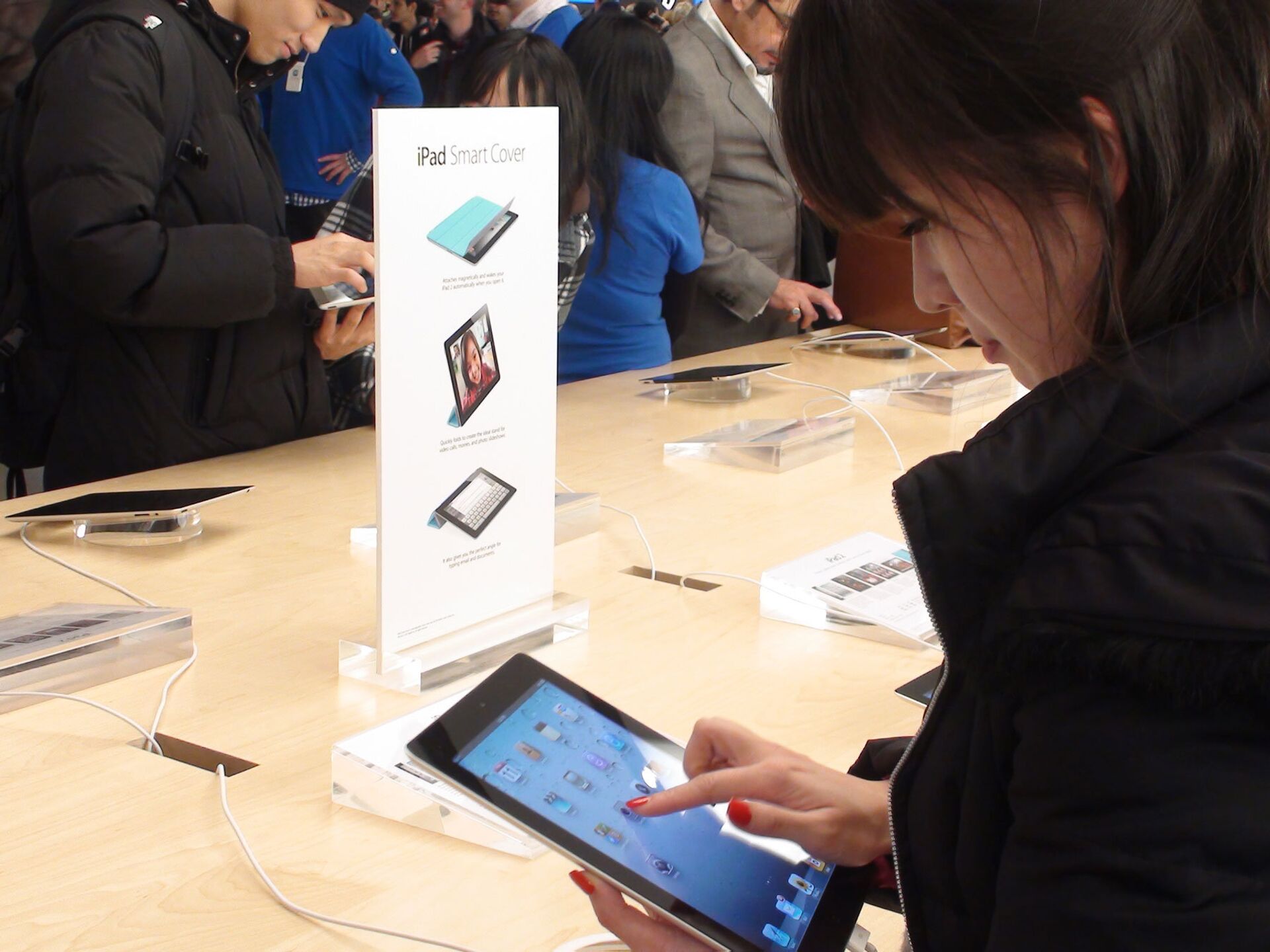 Las ventas de la tableta iPad 2 en la tienda oficial de Apple en la Quinta Avenida de Nueva York comenzaron la noche del viernes pasado, vitoreadas por los empleados de la tienda y unos miles de admiradores de Apple cuya cola tenía una cuadra de largo.