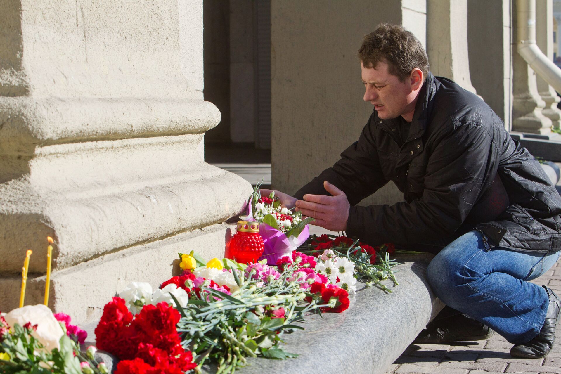 Pasadas unas horas después del ataque terrorista en el metro de Minsk, la población local empezó a llevar flores, velas y notas de condolencia al lugar del atentado.