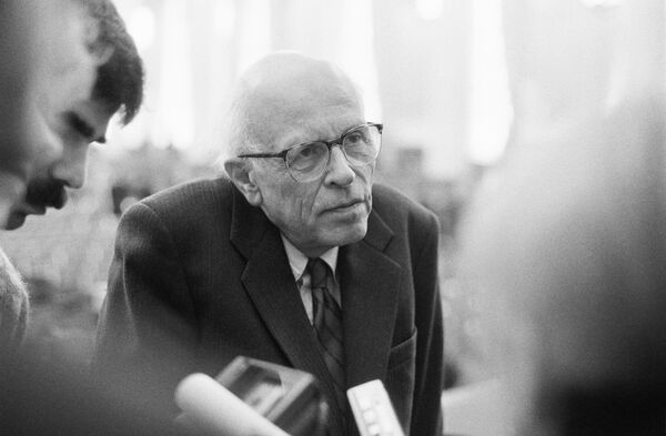 © RIA Novosti . Serguei Guneev / Acceder al contenido multimediaEn marzo de 1989 fue elegido diputado al parlamento soviético por la Academia de las Ciencias. Los compañeros de hemiciclo en numerosas ocasiones intentaron acallar sus intervenciones con gritos de desacuerdo y silbidos.