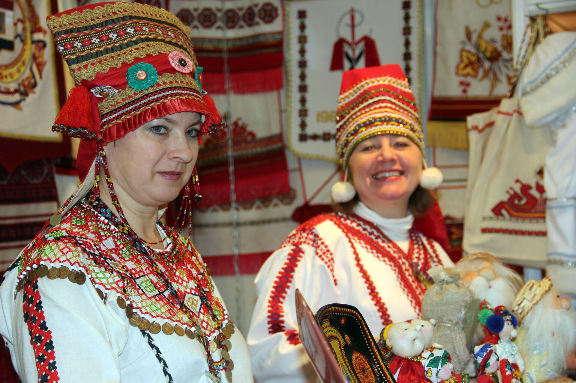 El stand de la República de Chuvashia (región del Alto Volga). Las participantes en la feria se vistieron en trajes nacionales.