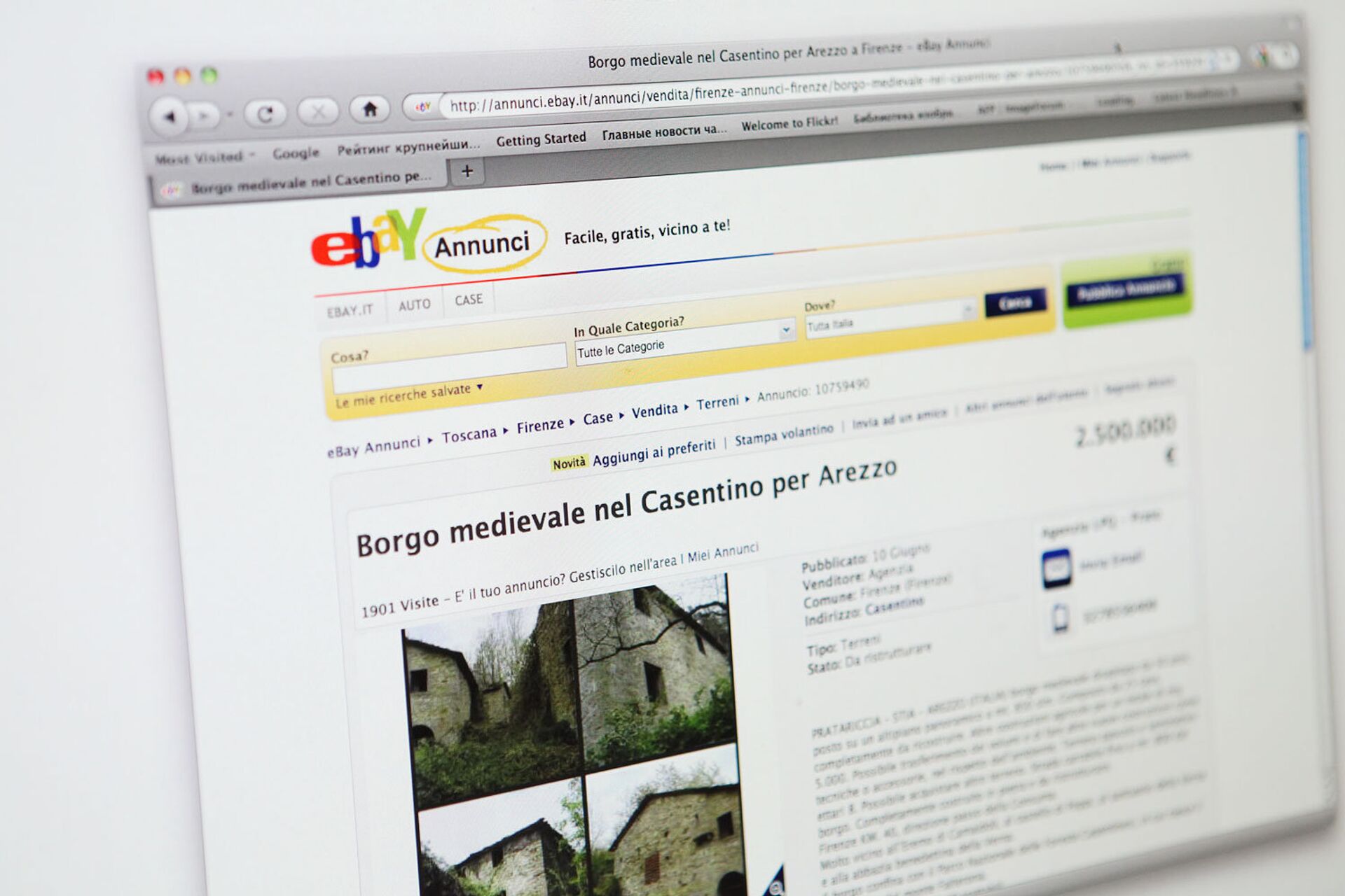Corredores de bienes raíces subastan en el sitio eBay la aldea medieval Pratariccia, en Italia, por US$3,1 millones, comunicó hoy la edición Daily Mail.