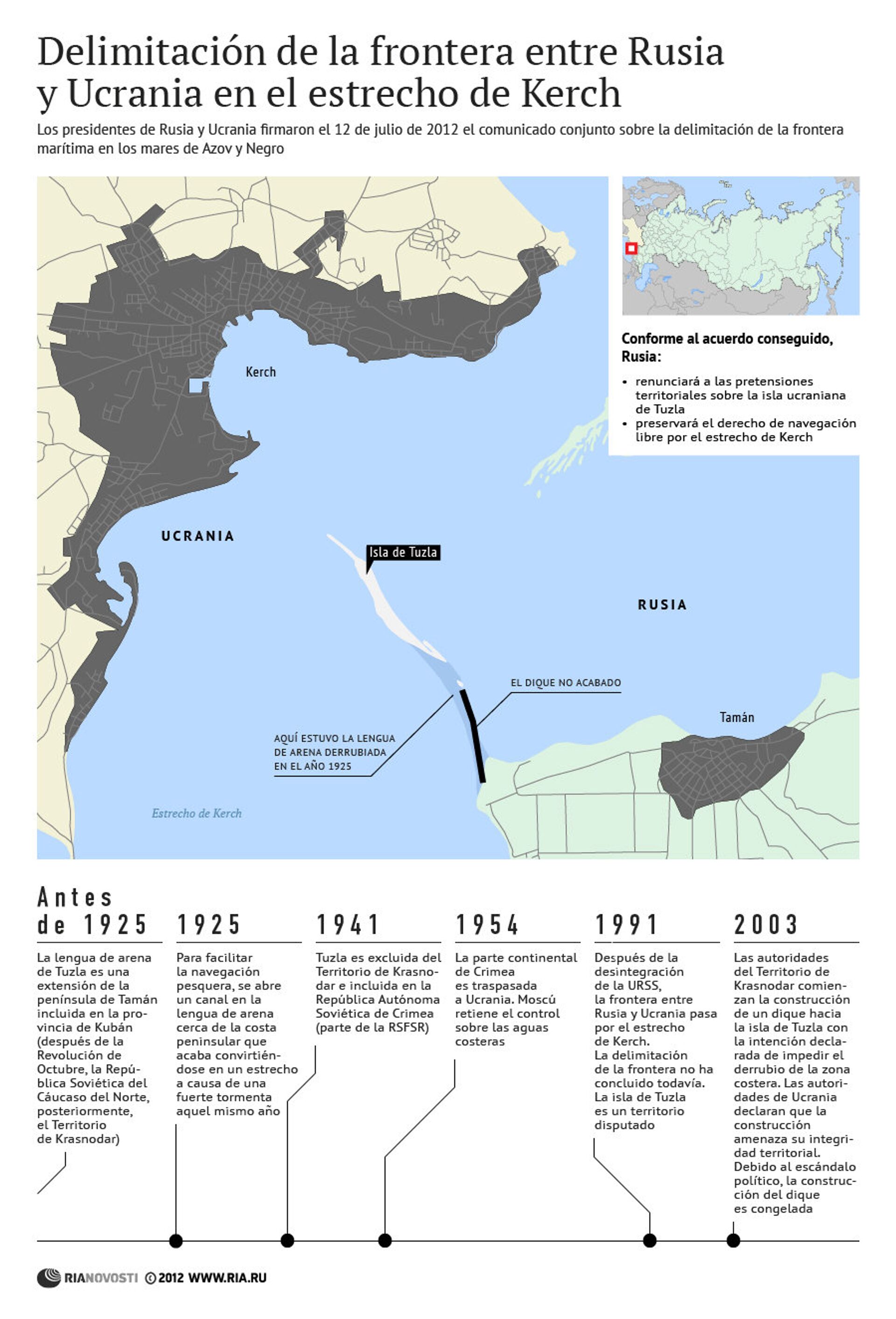 Los presidentes de Rusia y Ucrania firmaron el 12 de julio de 2012 el comunicado conjunto sobre la delimitación de la frontera marítima en los mares de Azov y Negro.