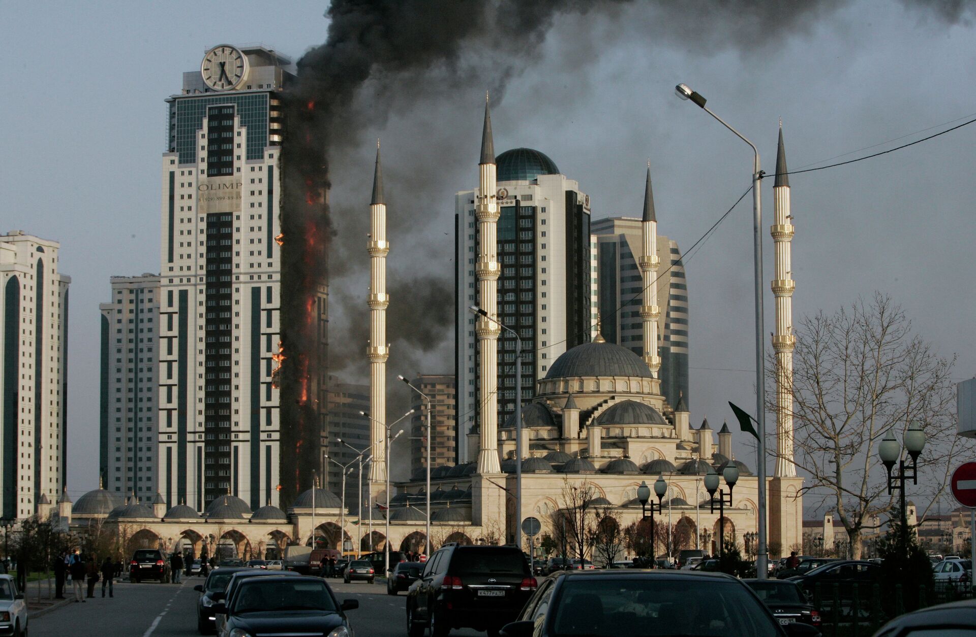 Un potente incendio se produjo el miércoles en la torre Olimp, la más alta del complejo de rascacielos Grozni-City, en la capital de Chechenia.