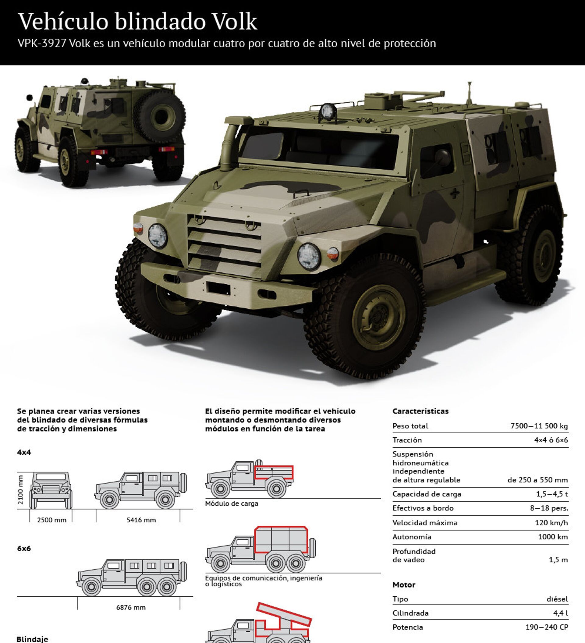 El VPK-3927 Volk es un vehículo modular cuatro por cuatro de alto nivel de protección.