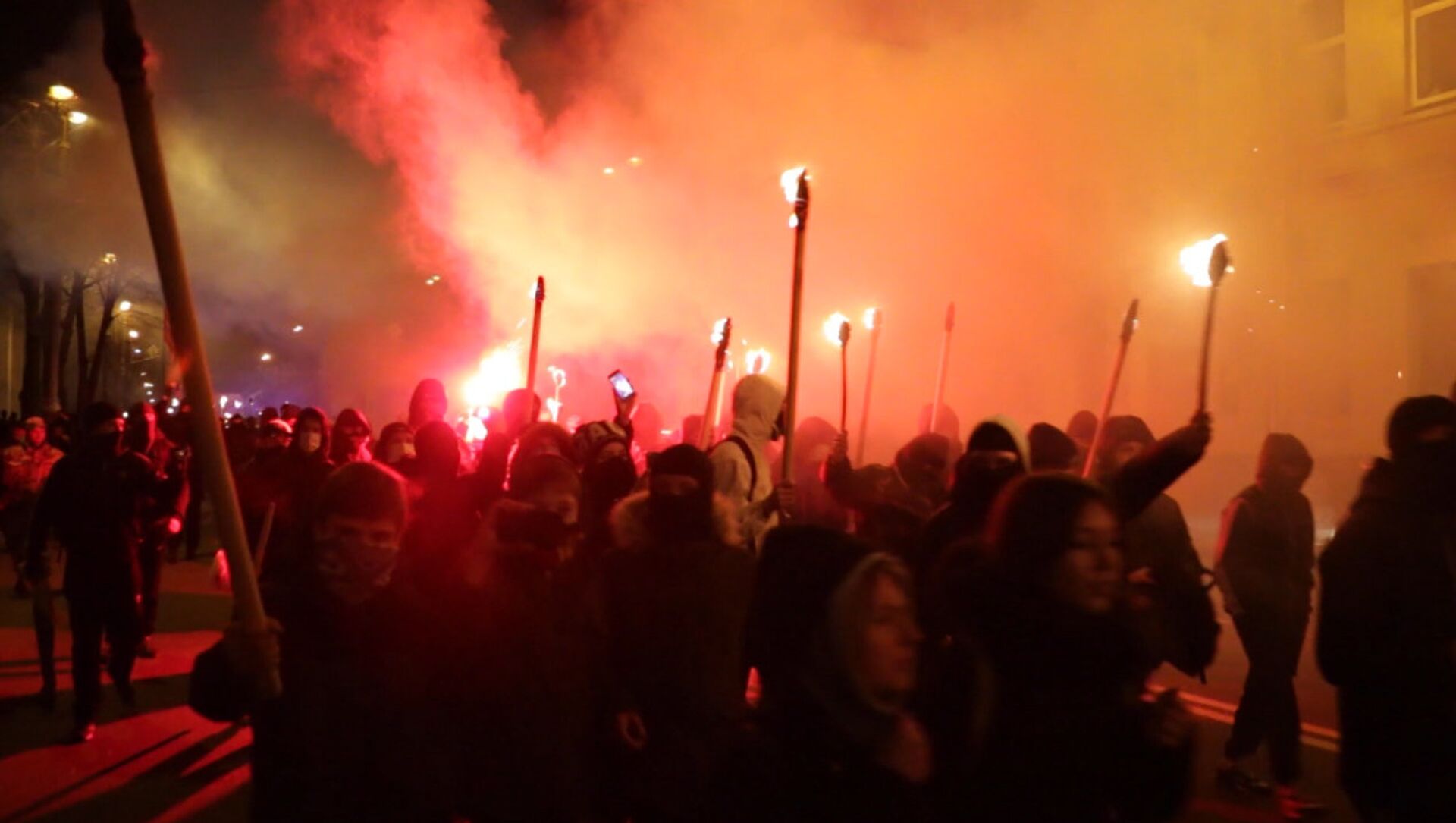 Ultranacionalistas ucranianos encienden bombas de humo en pleno centro de Kiev