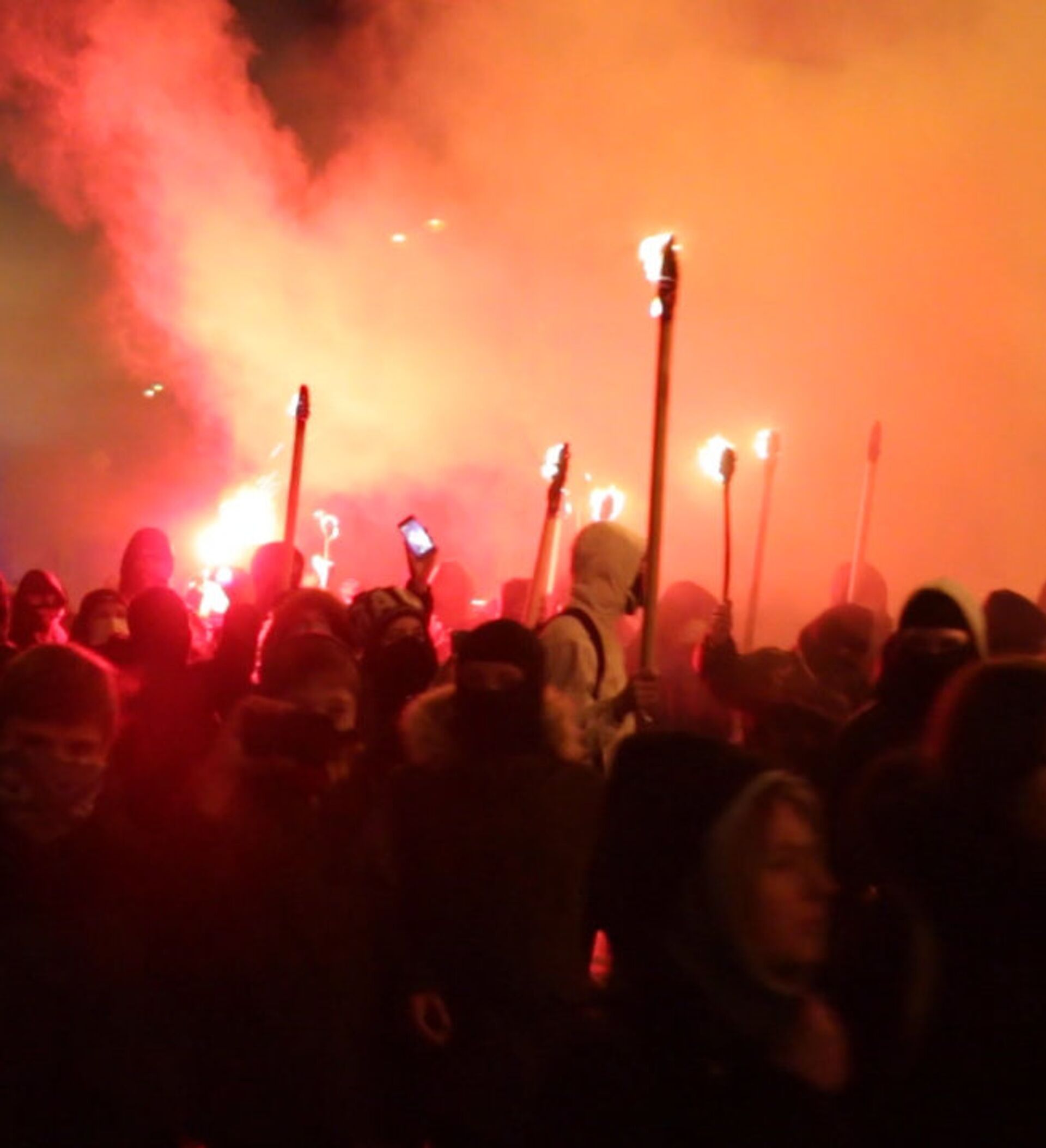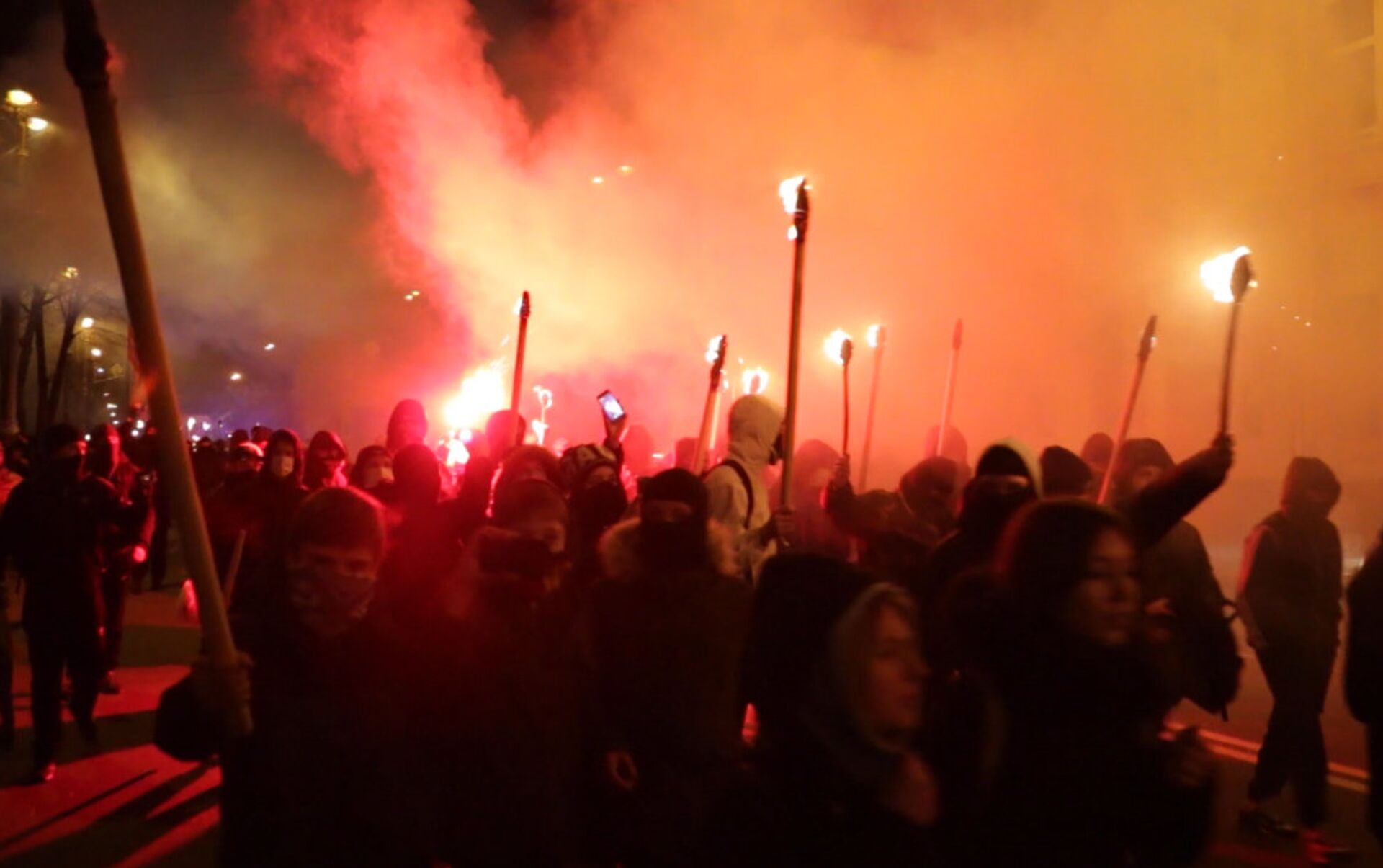 Este domingo la organización nacionalista “Chesne Slovo” (Palabra Verdadera) realizó una marcha con antorchas desde la sede del Parlamento ucraniano hasta el Edificio Administrativo Presidencial en Kiev. Los manifestantes arrojaron fuegos artificiales y encendieron bombas de humo para expresar su apoyo a la intervención militar contra las milicias de la autoproclamada República Popular de Donetsk.