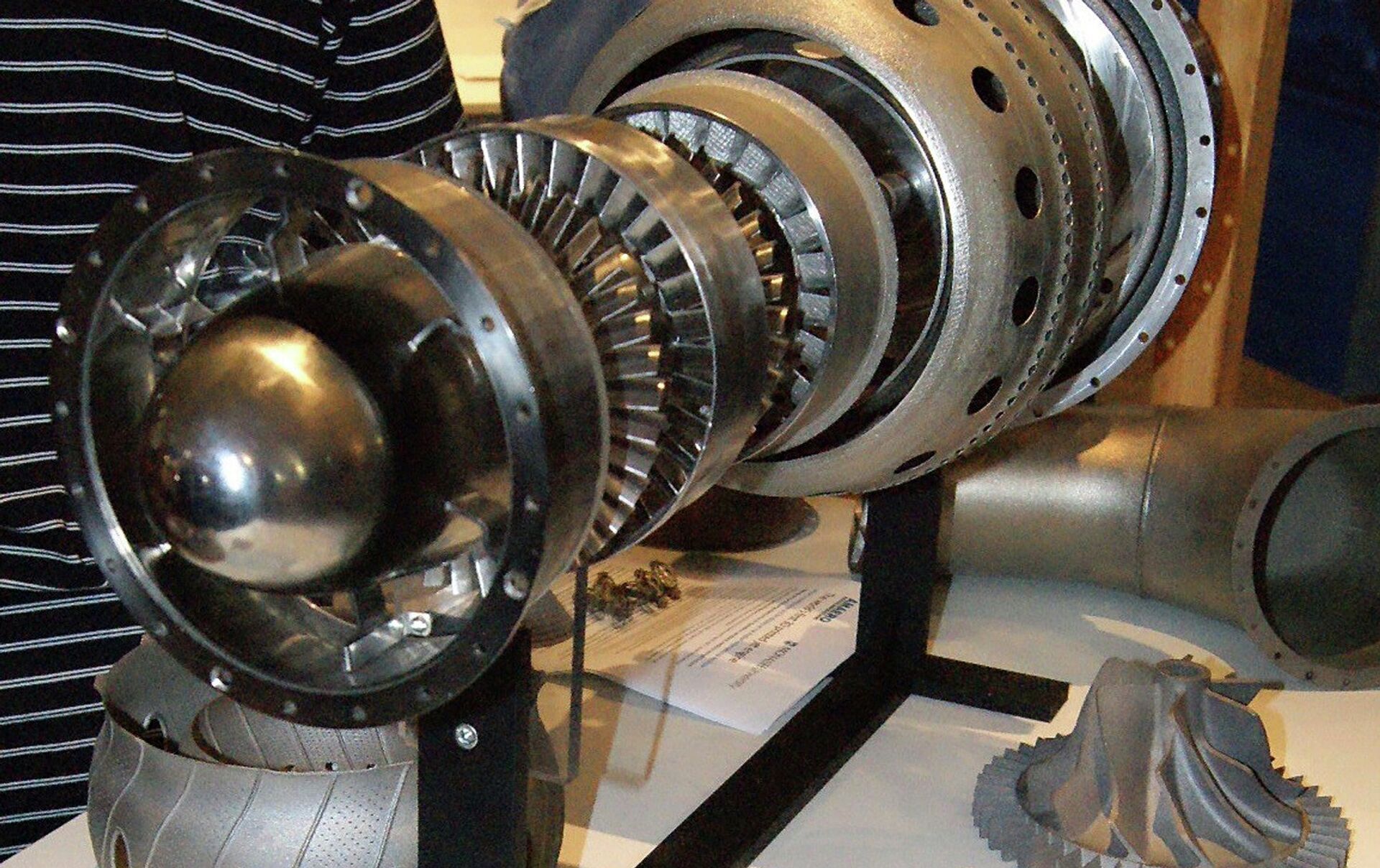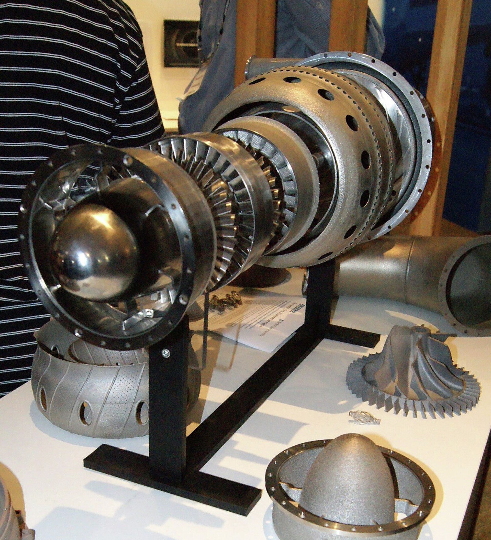 Uno de los dos motores impresos se exhibe en estos momentos en la Feria Aeronáutica del aeropuerto de Avalon, en Melbourne, donde despertó el interés de los representantes de la Fuerza Aérea de EEUU.