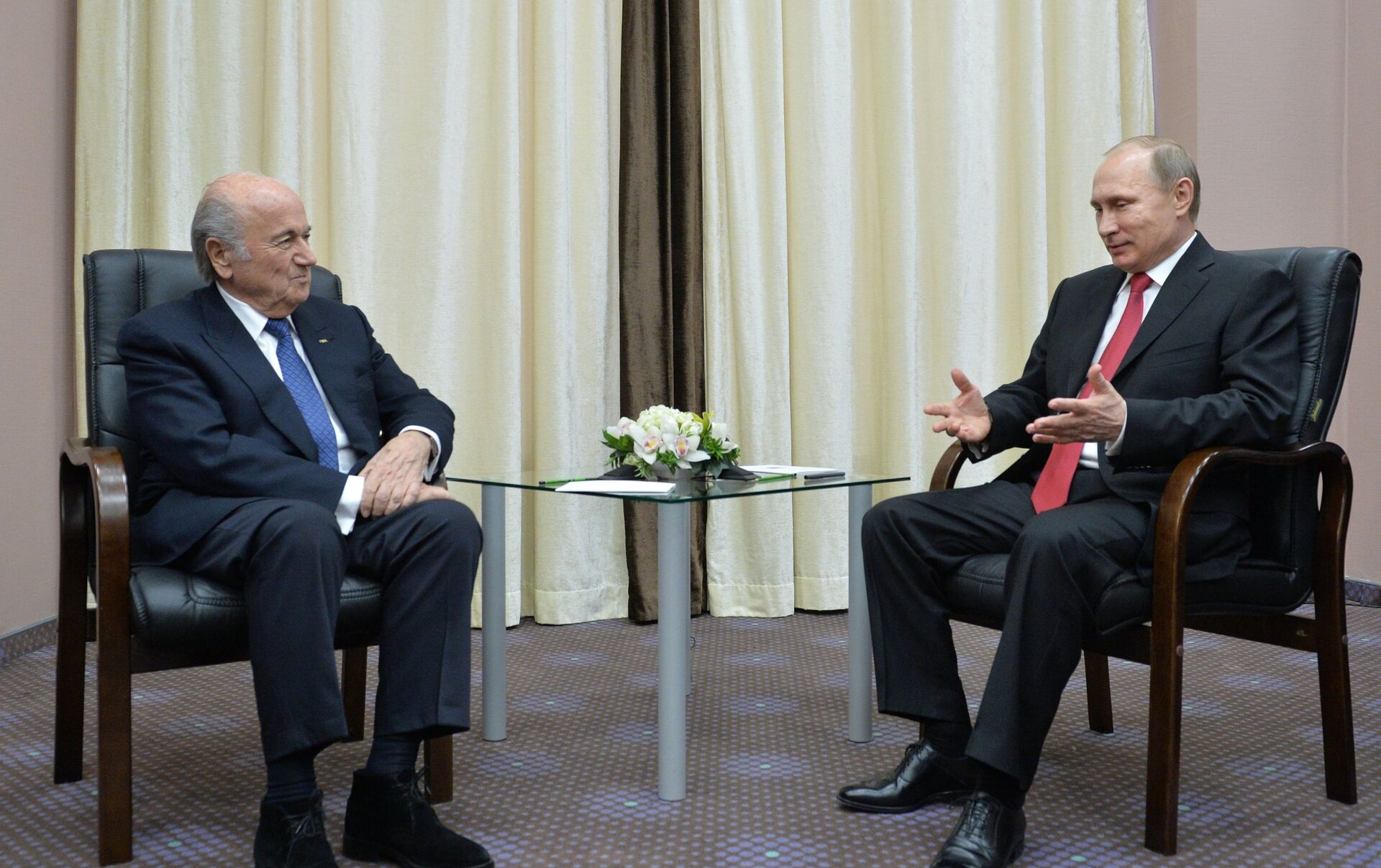 "Nuestro país acogió los Juegos Olímpicos (de invierno) el año pasado y ahora asume la ingente tarea de preparar el Mundial de Fútbol de 2018 (…), procuraremos no decepcionarle ni a usted, estimado señor presidente, ni a los aficionados del mundo entero", declaró Putin.
