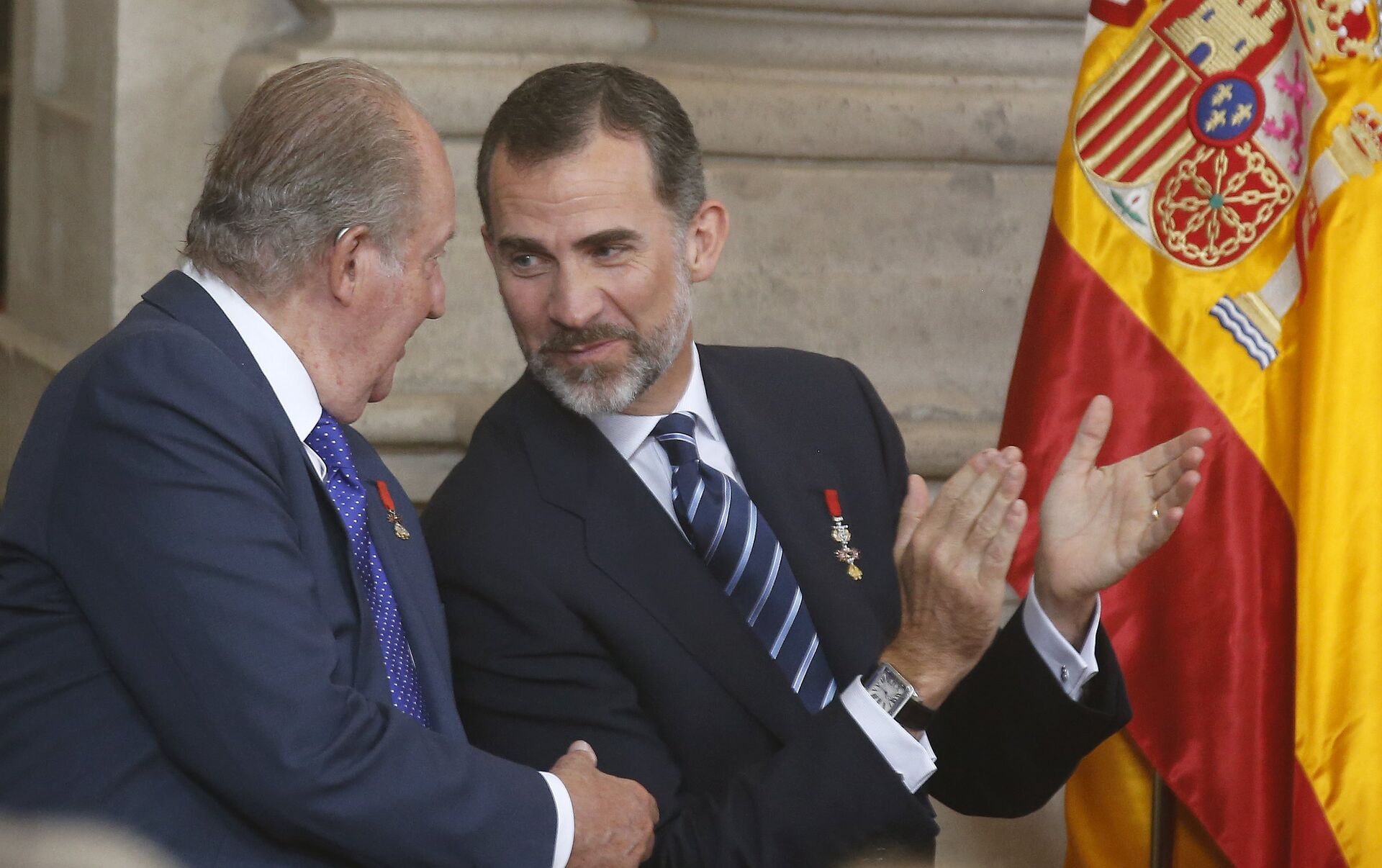 El Rey Felipe VI y su padre, Juan Carlos I, han presidido el acto acompañados del presidente del Parlamento Europeo, Martin Schulz, y todos los expresidentes españoles de la democracia: Felipe González, José María Aznar y José Luis Rodríguez Zapatero, además del actual, el conservador Mariano Rajoy.
