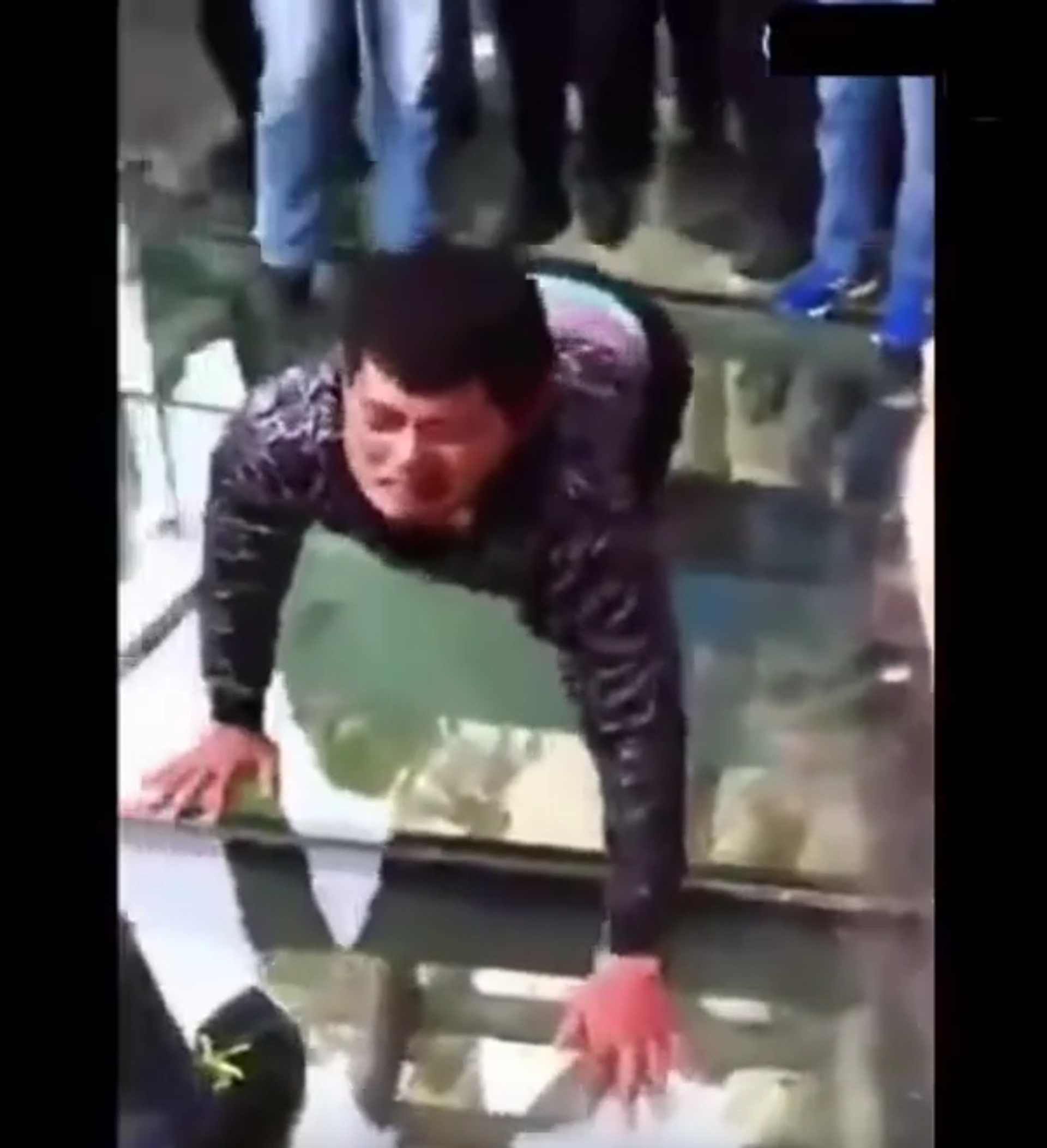 Un turista decidió encarar su miedo a las alturas y cruzar el puente de cristal del monte chino Tiananmen, tendido a 1.430 metros de altitud. Pero para poner a prueba su valentía, el joven se tuvo que poner a cuatro patas y realizar la travesía soportando burlas y risas.