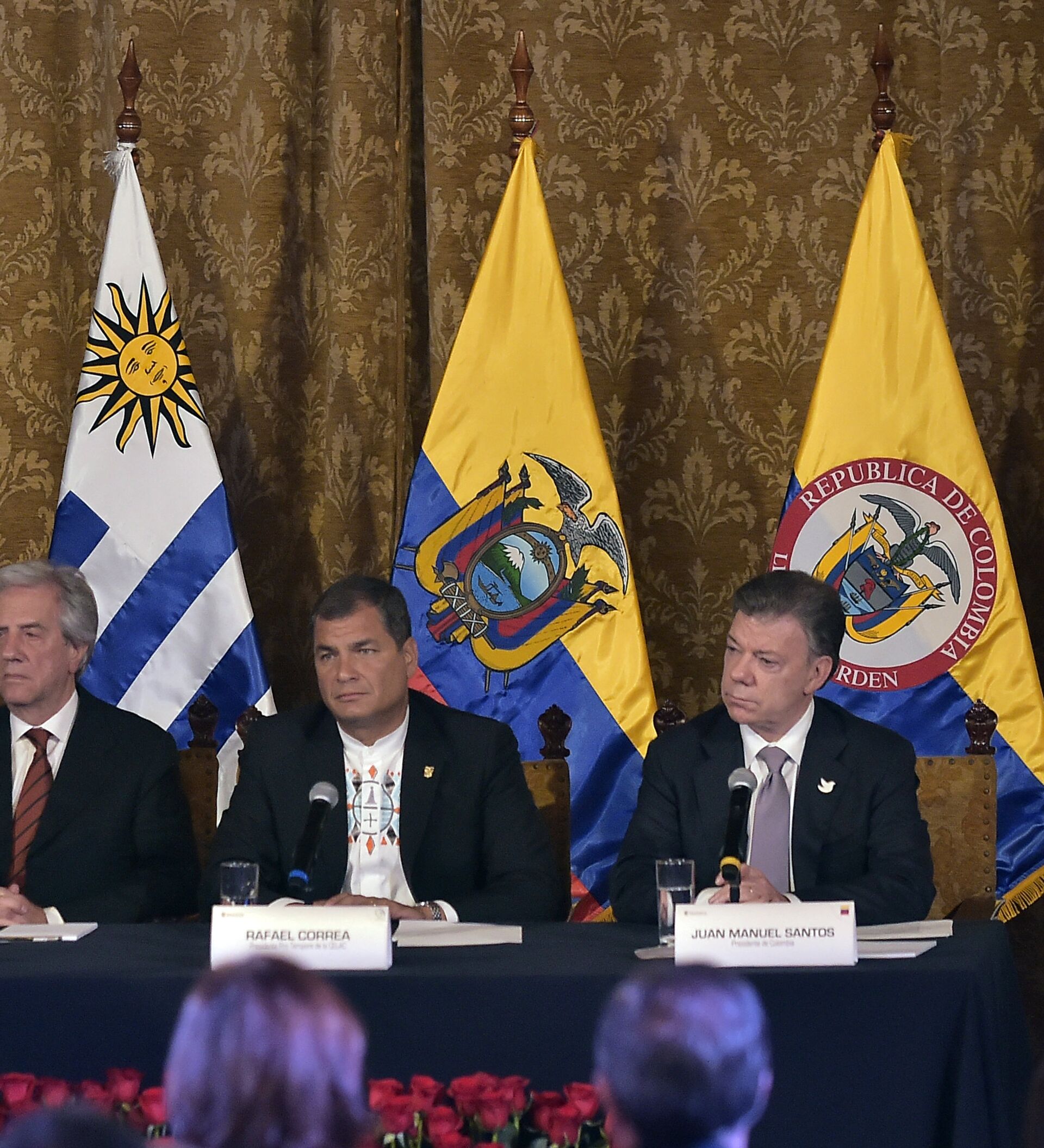 Maduro y Santos, acompañados por Correa y Vázquez, se reunieron el lunes en la capital ecuatoriana y acordaron, entre otras cosas, el retorno de los embajadores de cada país a sus respectivas misiones y trabajar para "normalizar gradualmente" la situación en la frontera.
