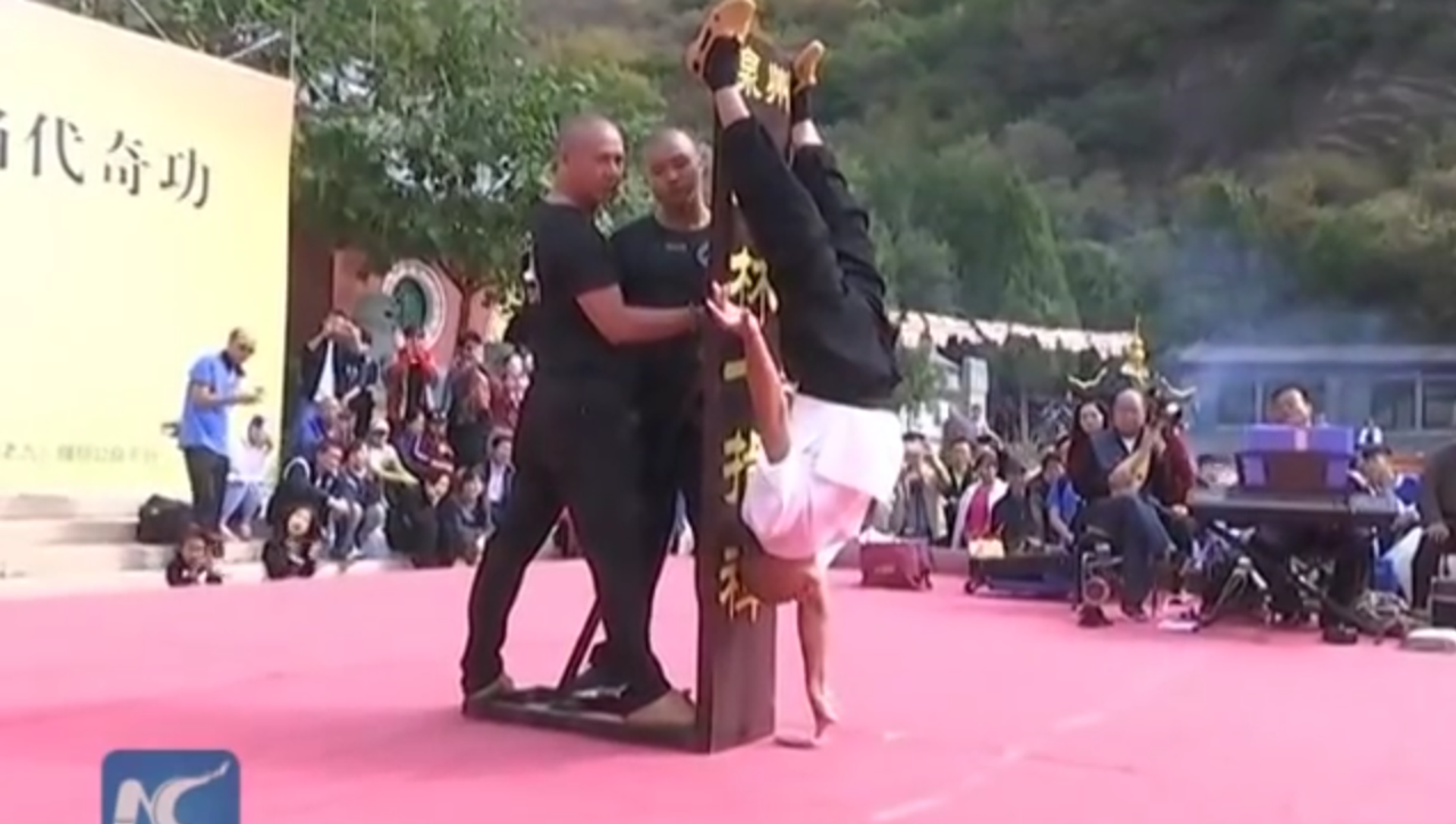 El monje de shaolín mantuvo la postura durante 10 segundos.