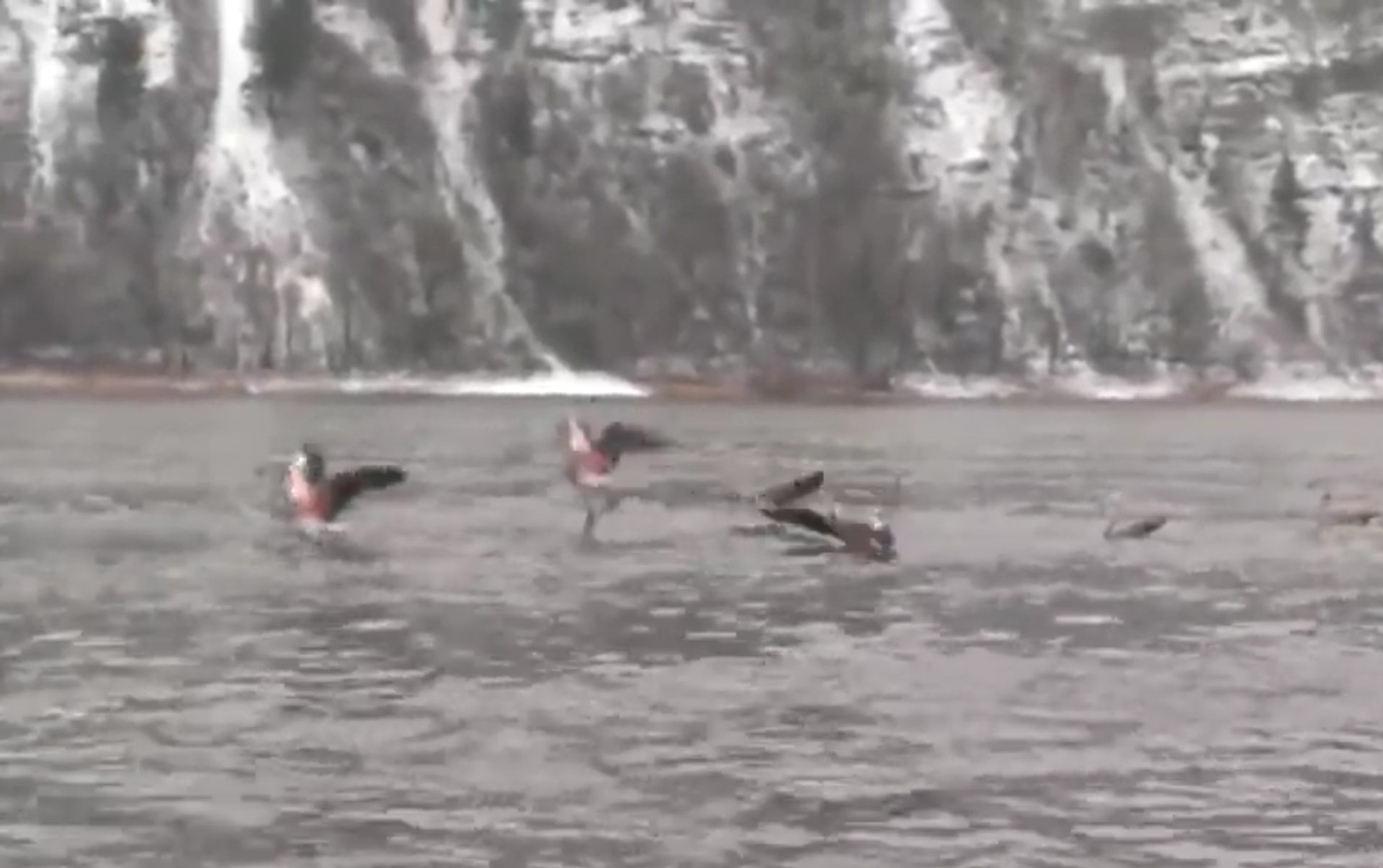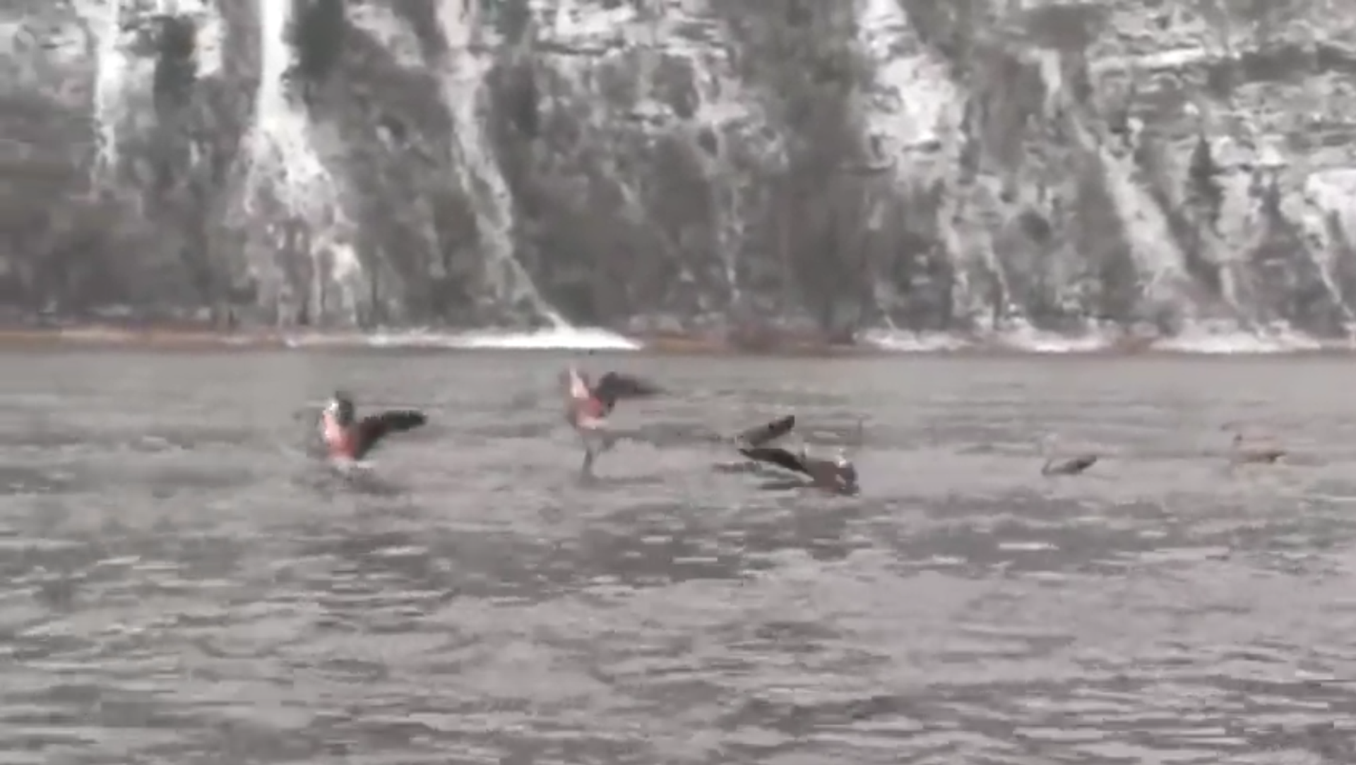 El autor del video logró captar estas insólitas imágenes de flamencos en medio de las nieves siberianas.