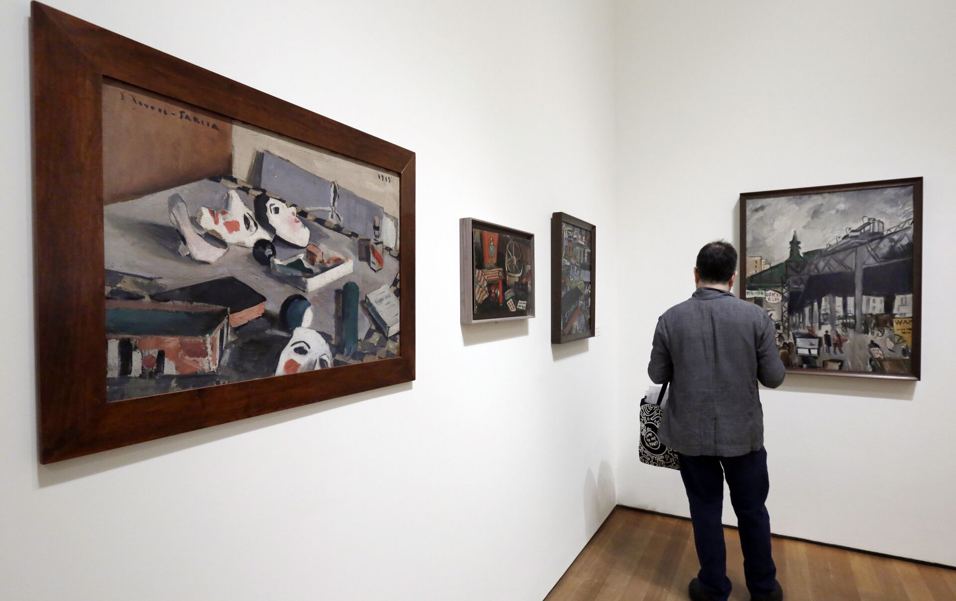 En la entrada de la exposición se puede ver la célebre imagen de la “América invertida”, y el fresco “Lo temporal no es más que un símbolo”, que Torres pintó en 1916 para el Palacio de la Generalidad en Cataluña. Son 190 piezas de distintos estilos entre pinturas, esculturas y juguetes. Están algunas de sus obras más tempranas y otras de Barcelona en 1917, donde trabajó con Antonio Gaudí en los vitrales de la catedral de Palma de Mallorca y de “La Sagrada Familia”, así como las creaciones realizadas durante su estancia en Nueva York en los años veinte y de su regreso a París en 1928, donde se vinculó a Piet Mondrian y fundó el movimiento Círculo y Cuadrado.