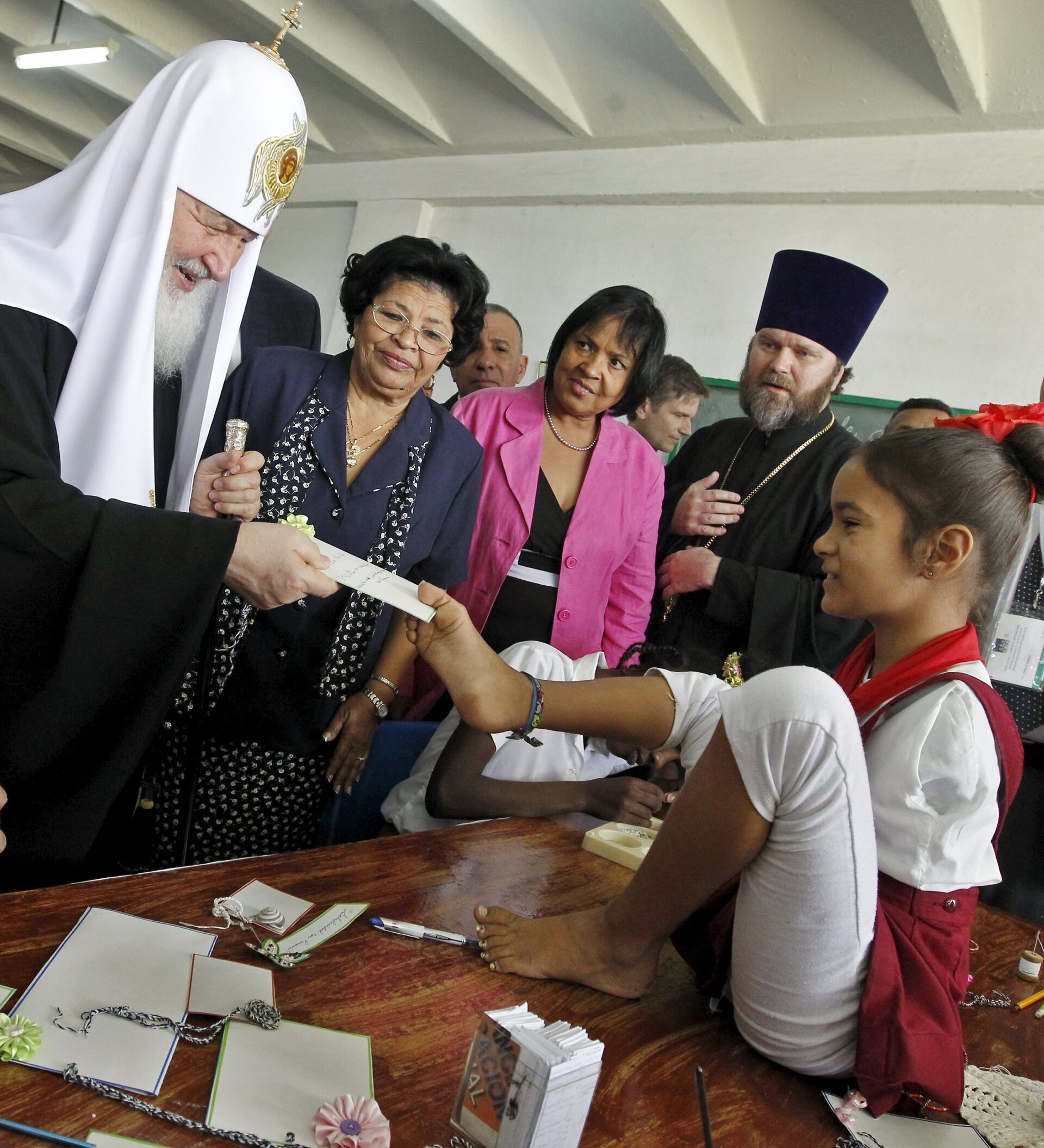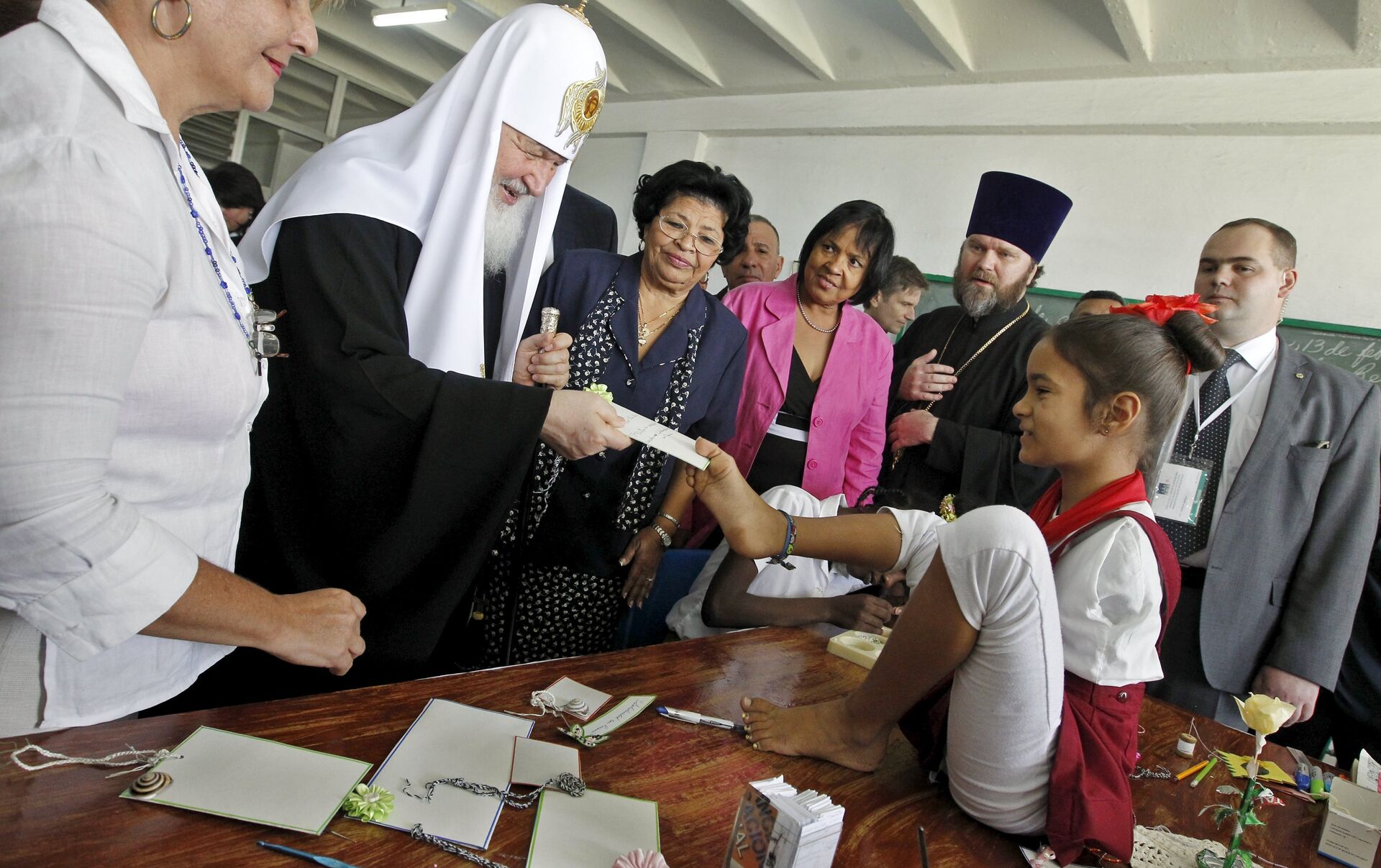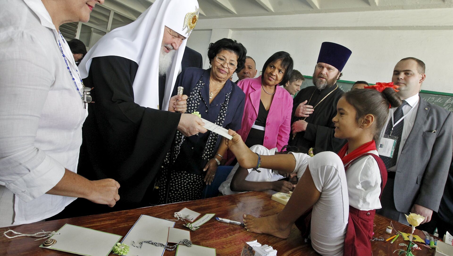 "Es un placer recibir hoy al patriarca en nuestra escuela, es un honor que creo que sienten nuestros niños al ver al patriarca, un honor para nuestros trabajadores y para la educación cubana", dijo a Sputnik Nóvosti la directora del colegio, Esther La O Ochoa.