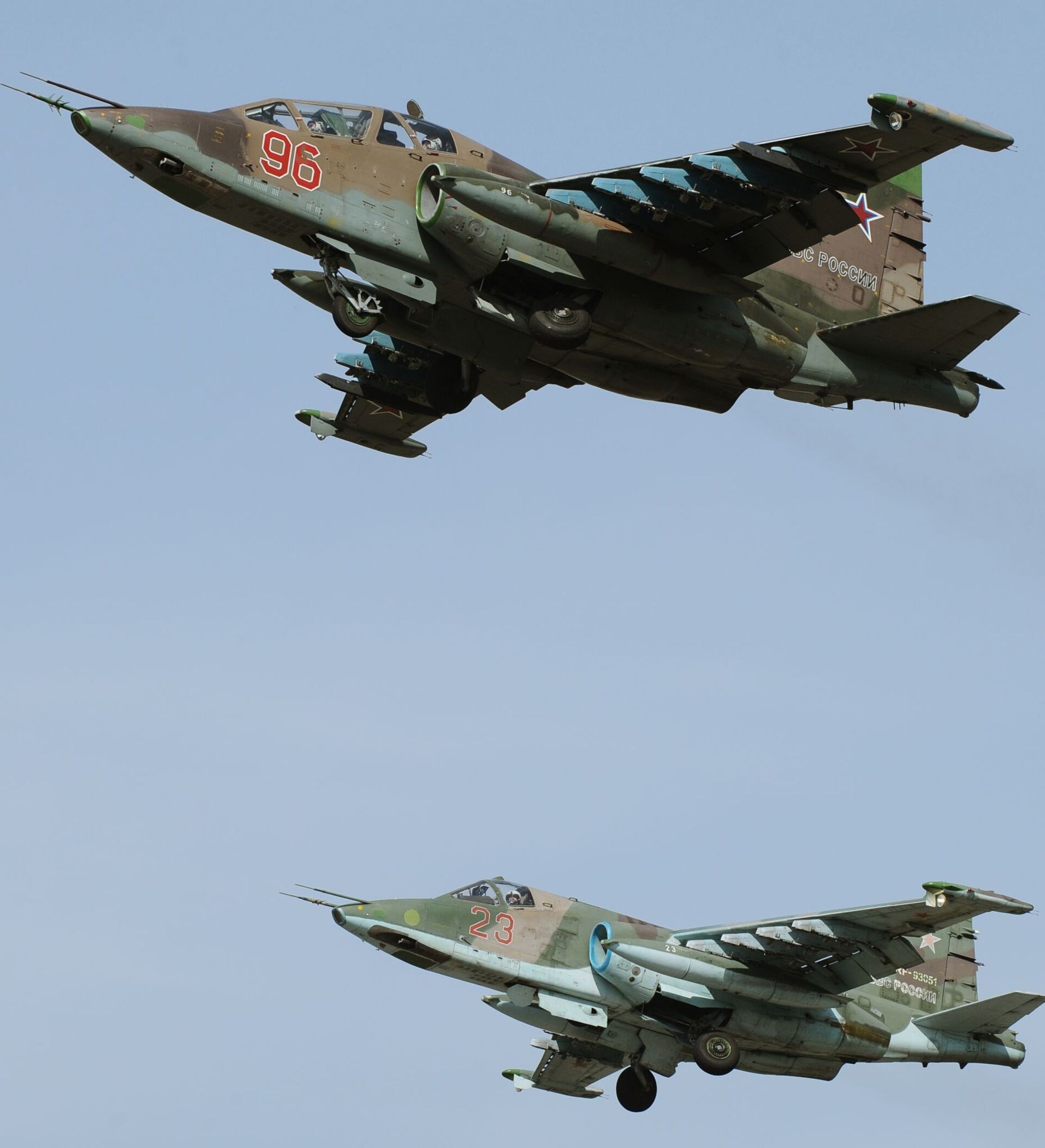 Las tripulaciones de los Su-25SM apoyarán desde el aire a la infantería motorizada y a las fuerzas especiales, y atacarán blancos que imitan arsenales de un enemigo ficticio en zona montañosa.