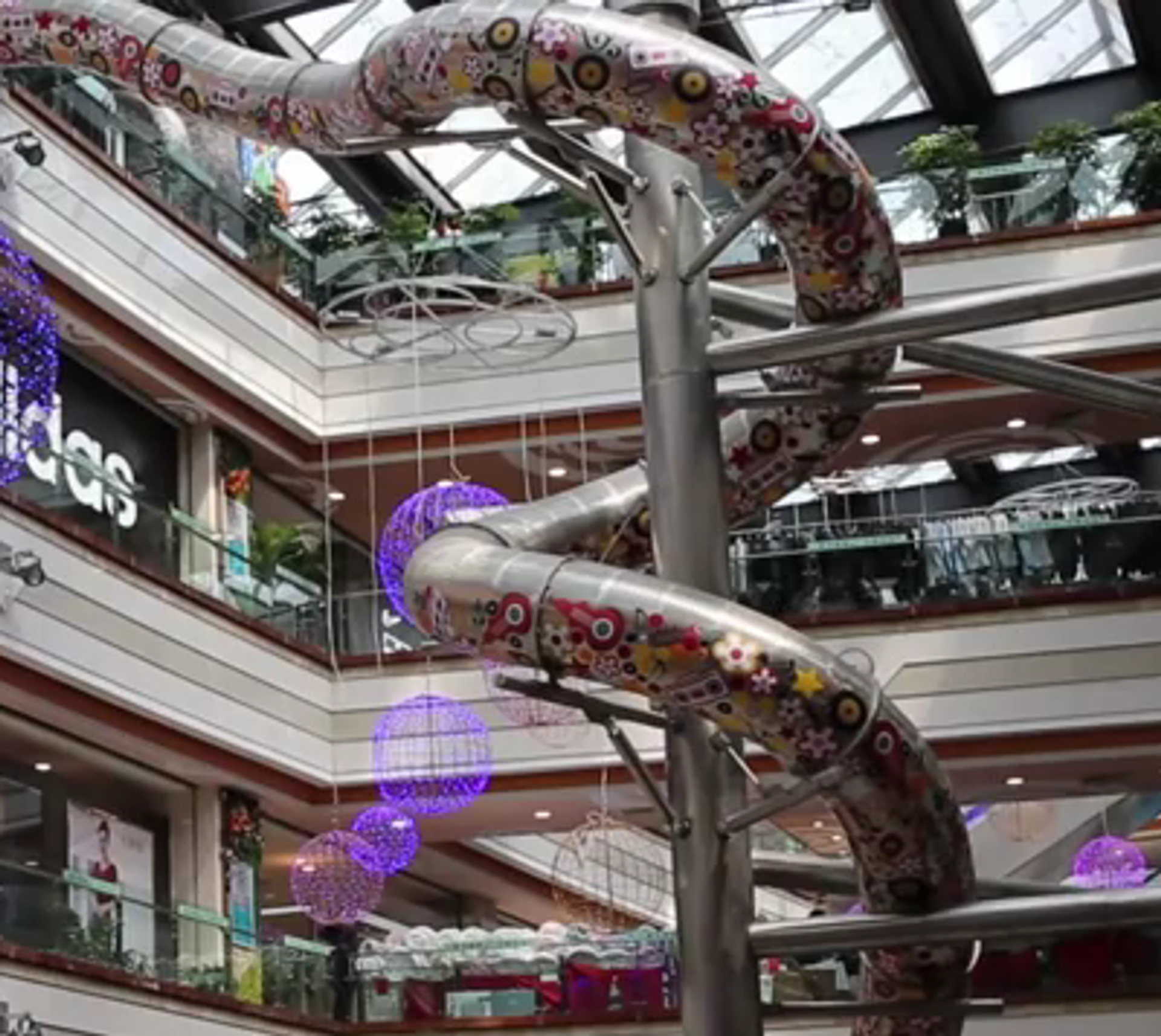 Las condiciones necesarias para usar el tobogán —que tiene forma de dragón— son la de tener más de tres años así como más de un metro de altura. El "viaje" desde el quinto hasta el primer piso tiene una duración de 16 segundos.