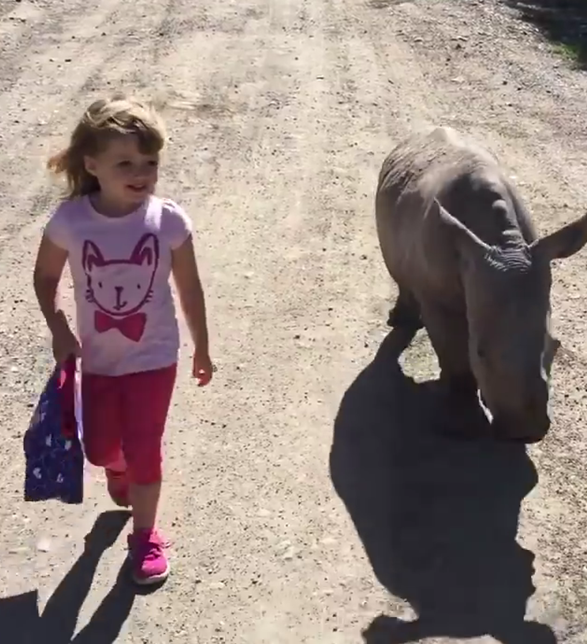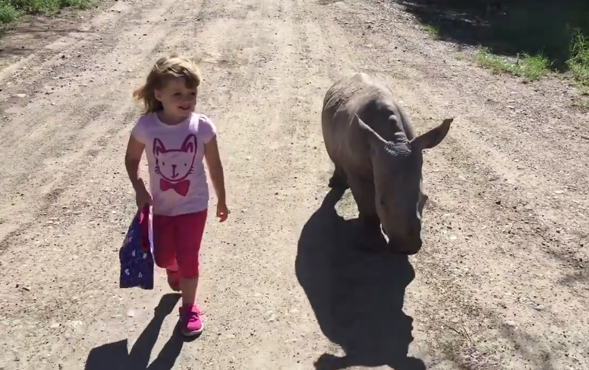 En el vídeo publicado por el parque, los dos pasean por un camino como si fueran viejos amigos. Según la grabación, la pequeña habló con el animal y no tuvo miedo de su compañero.