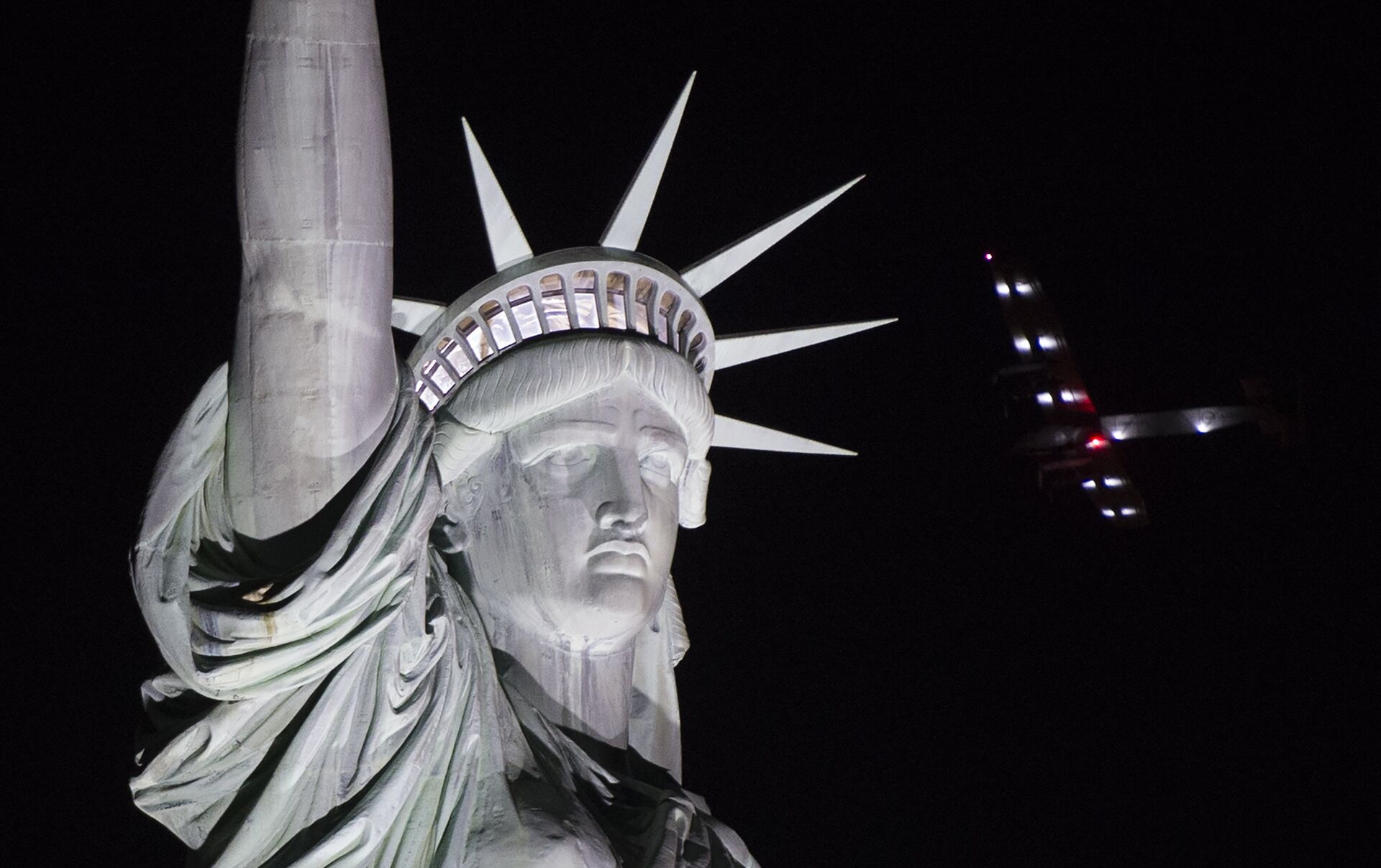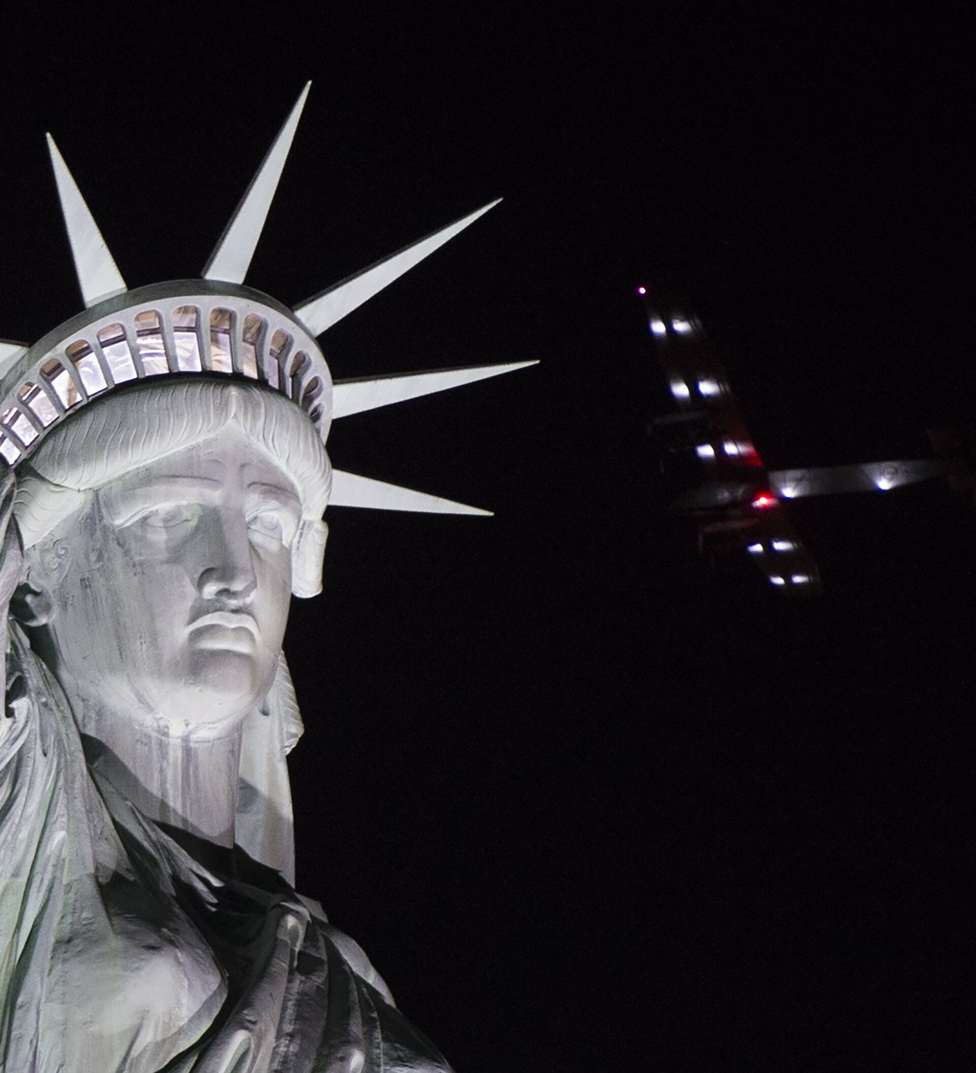 El avión sobrevoló la Estatua de la Libertad y tomó tierra en el aeropuerto internacional John F. Kennedy; se trata de su última escala antes de cruzar el Atlántico.