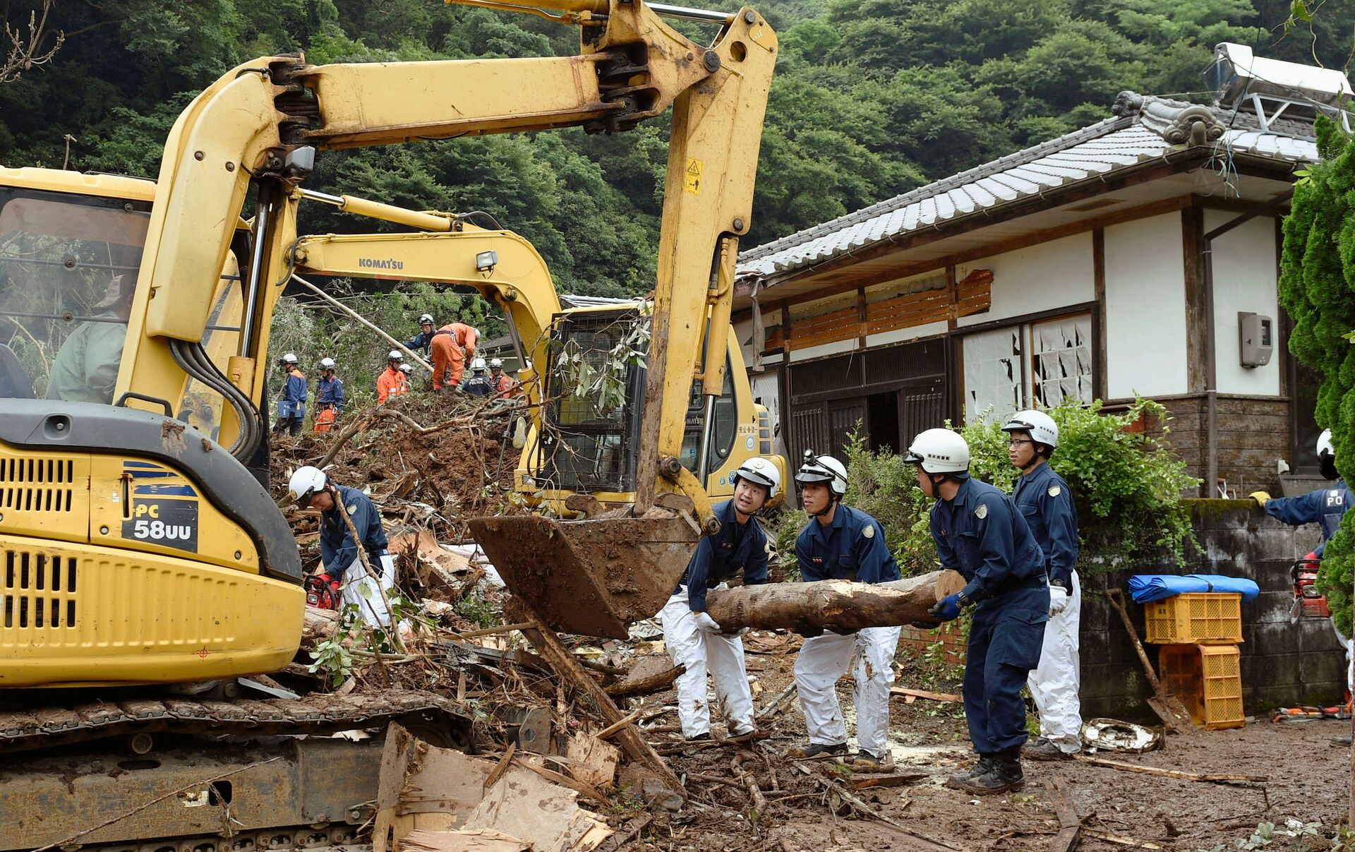 Este martes un deslave destruyó una casa en la prefectura de Kagoshima, de la isla de Kyushu; la mujer rescatada de las ruinas de la casa permanece inconsciente.