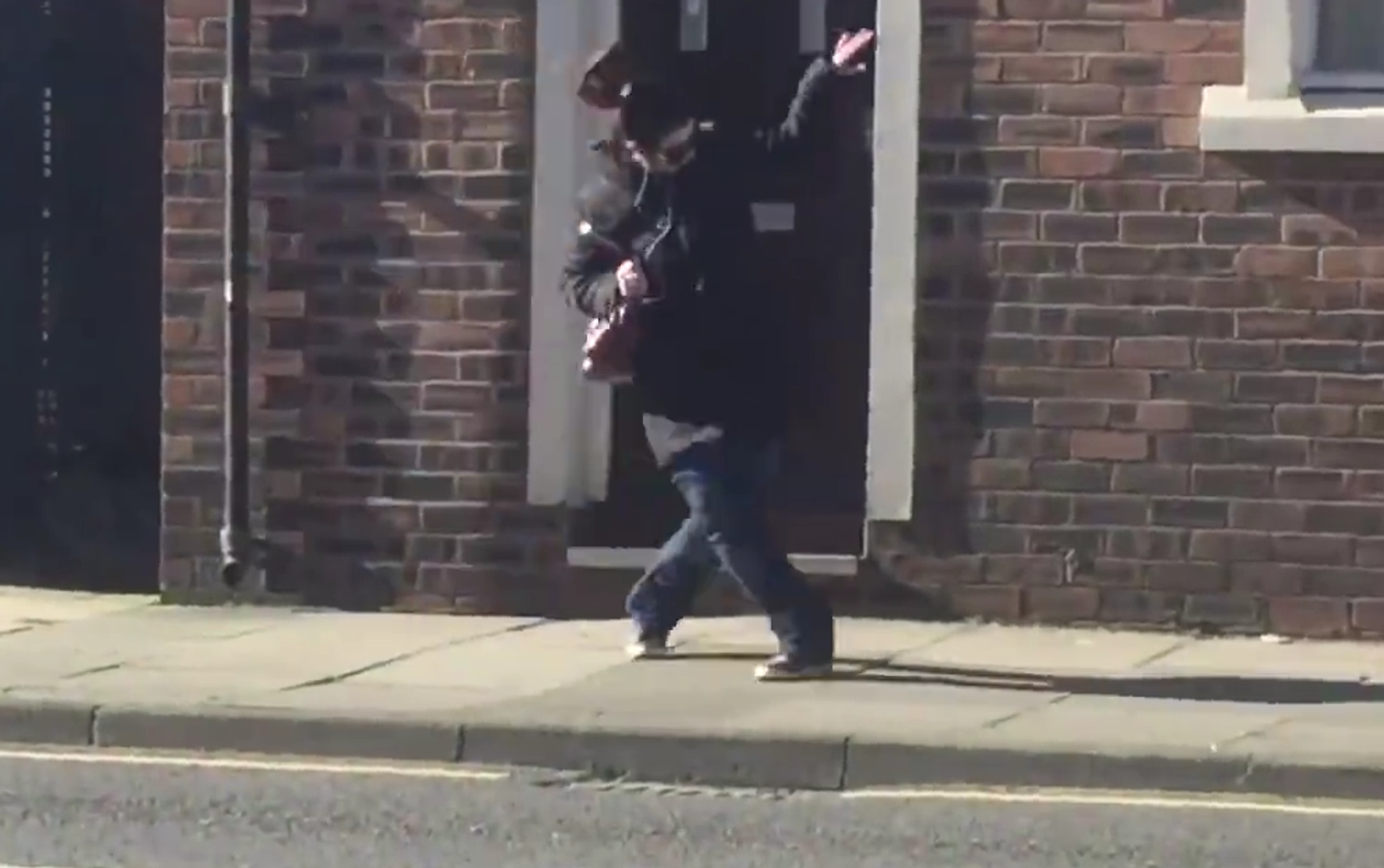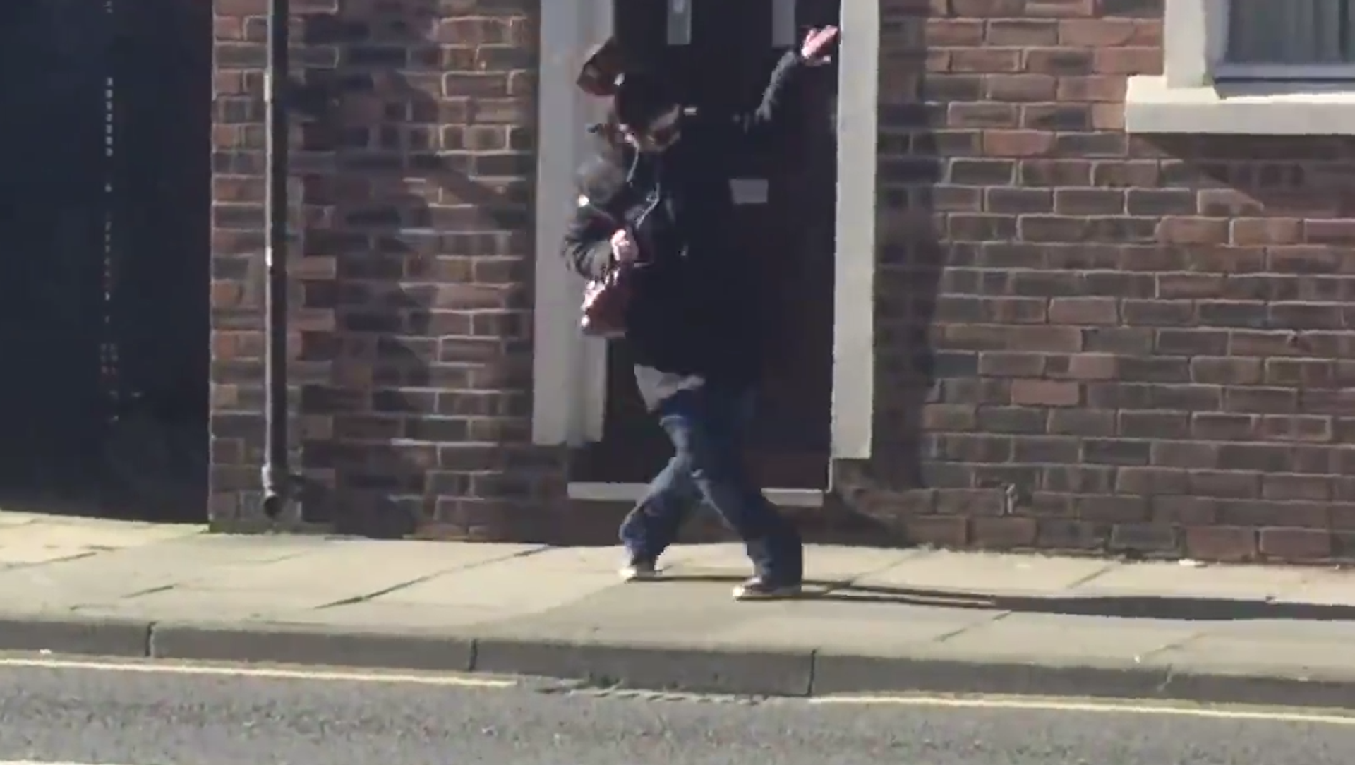 El conductor de un coche decidió grabar un vídeo con su móvil cuando vio a una mujer bailando en plena calle de Liverpool.