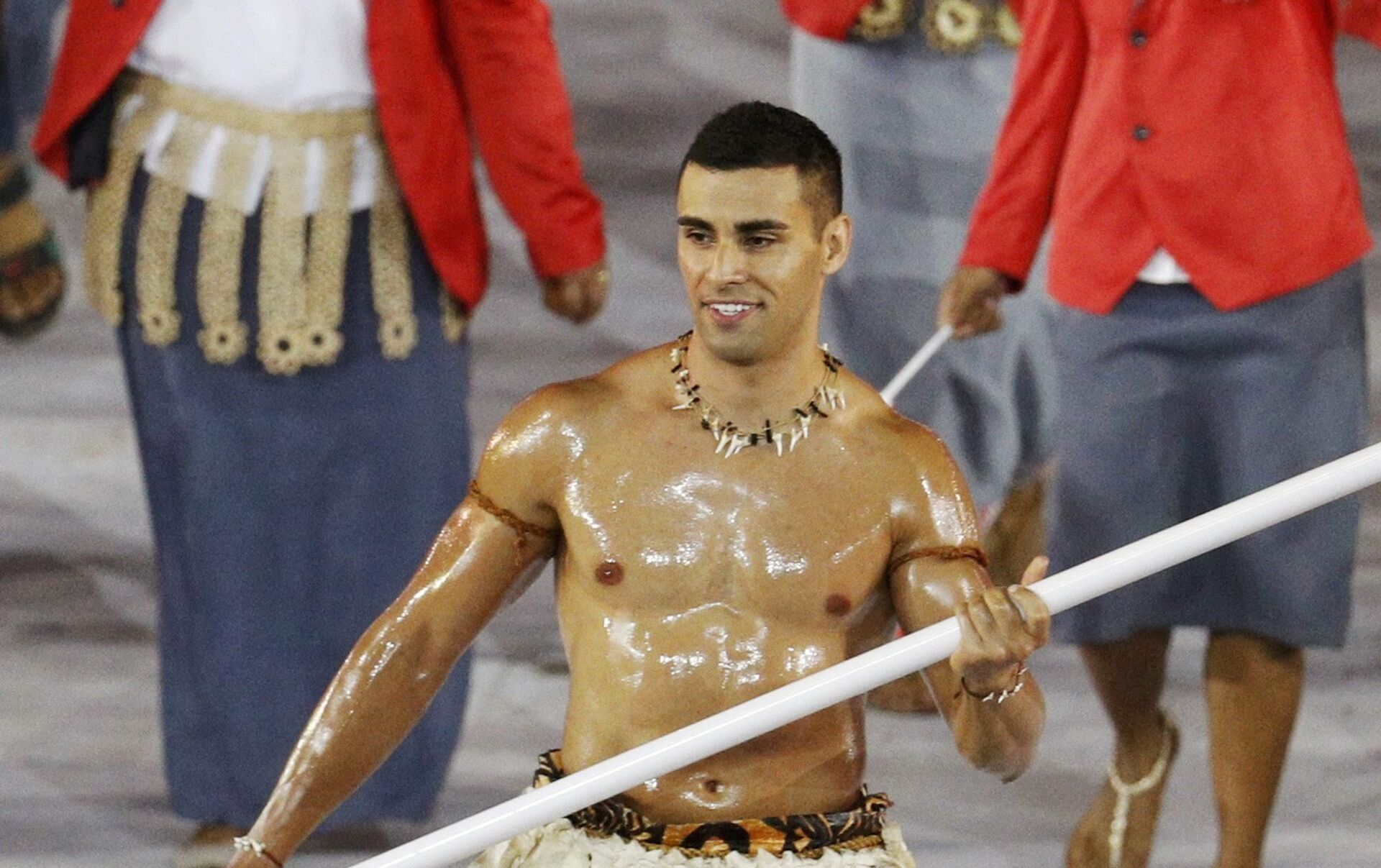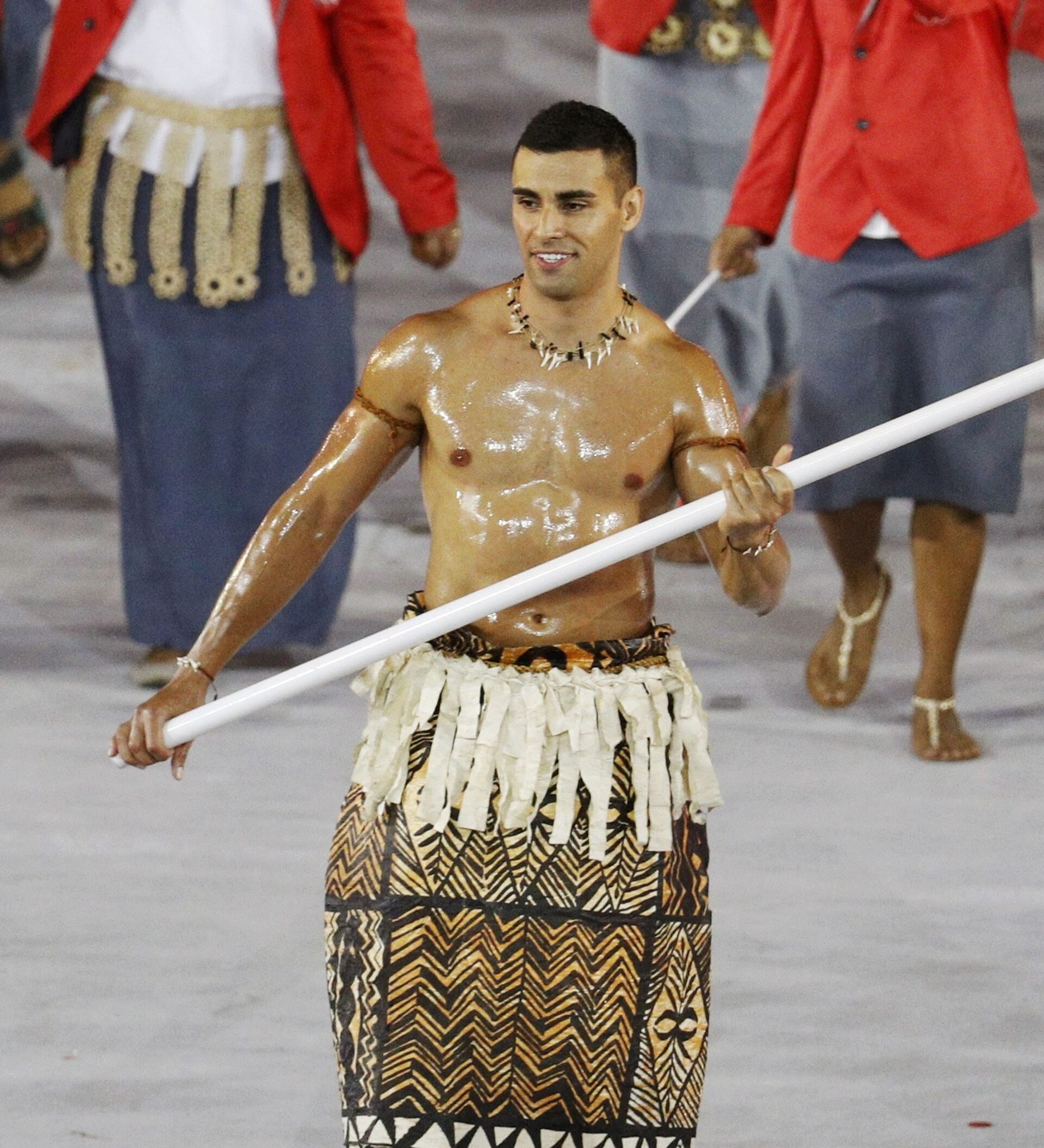 Al salir con la bandera de su país durante el desfile de naciones, Taufatofua sorprendió a todos, apareciendo con el torso desnudo y cubierto en aceite, además de lucir una sonrisa que reflejaba los nervios y la felicidad del deportista.