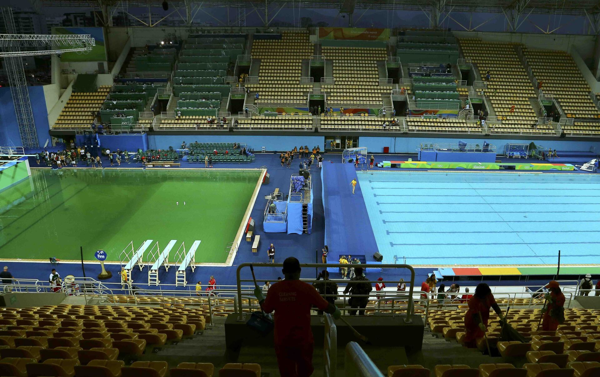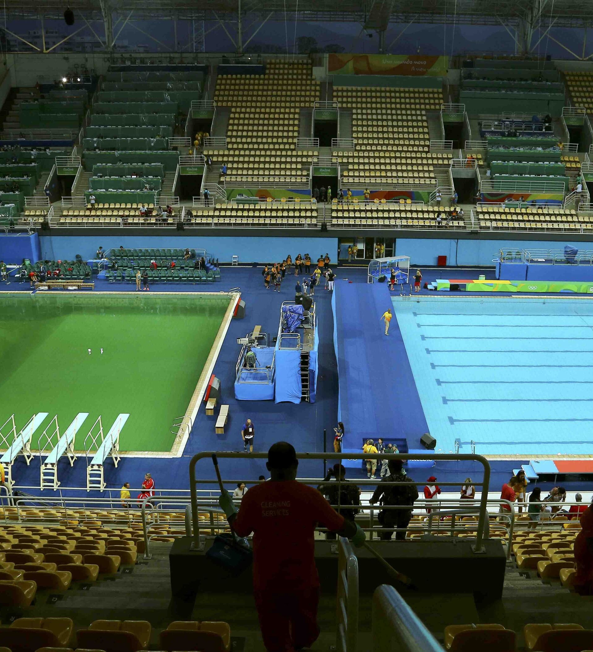 El 12 de agosto en la piscina fueron cancelados los entrenamientos de clavados después de que el agua se volviera de color verde.