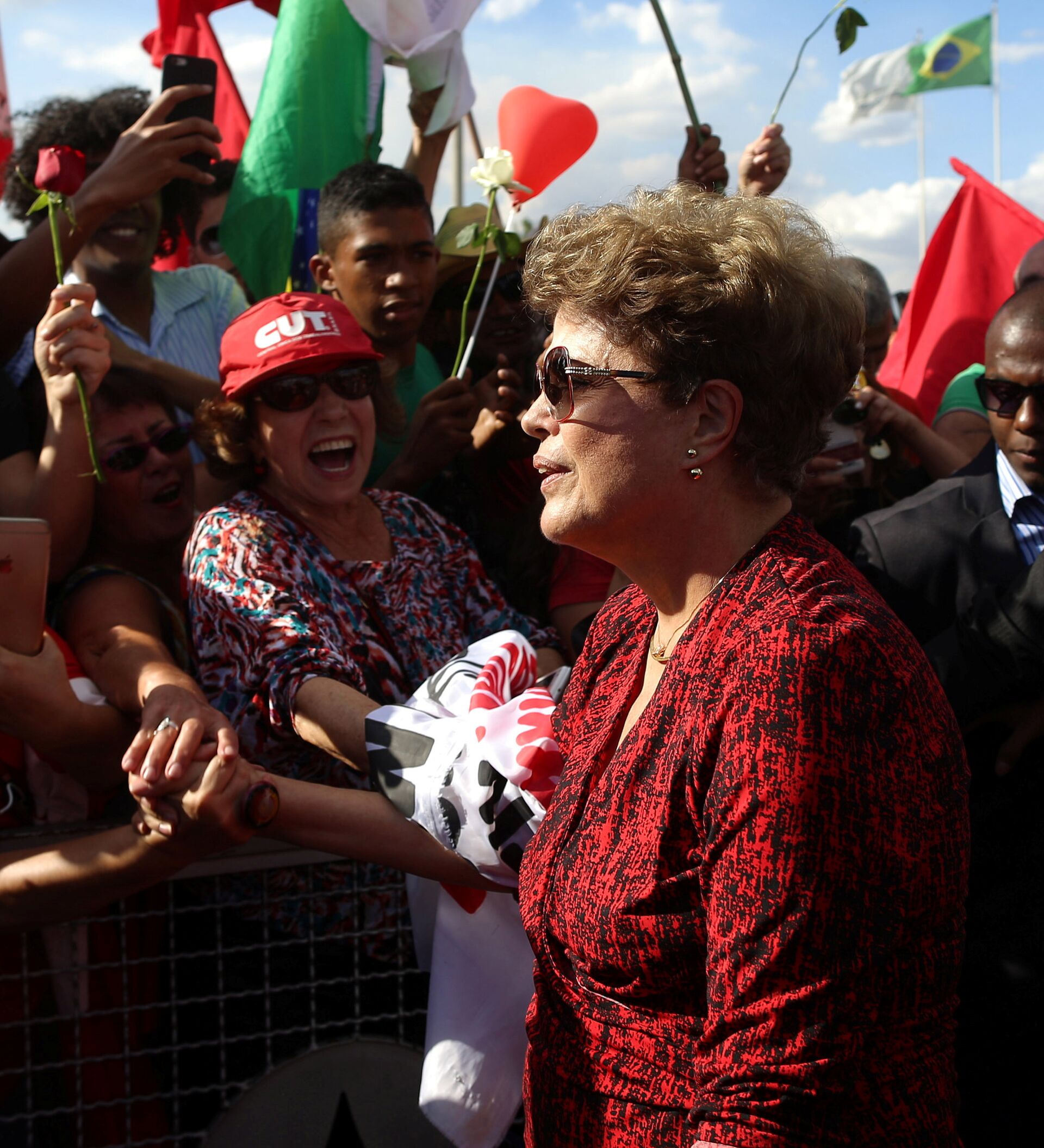 La expresidenta repartió besos y abrazos entre los presentes, muchos de los cuales le entregaron rosas rojas, color del izquierdista Partido de los Trabajadores (PT).