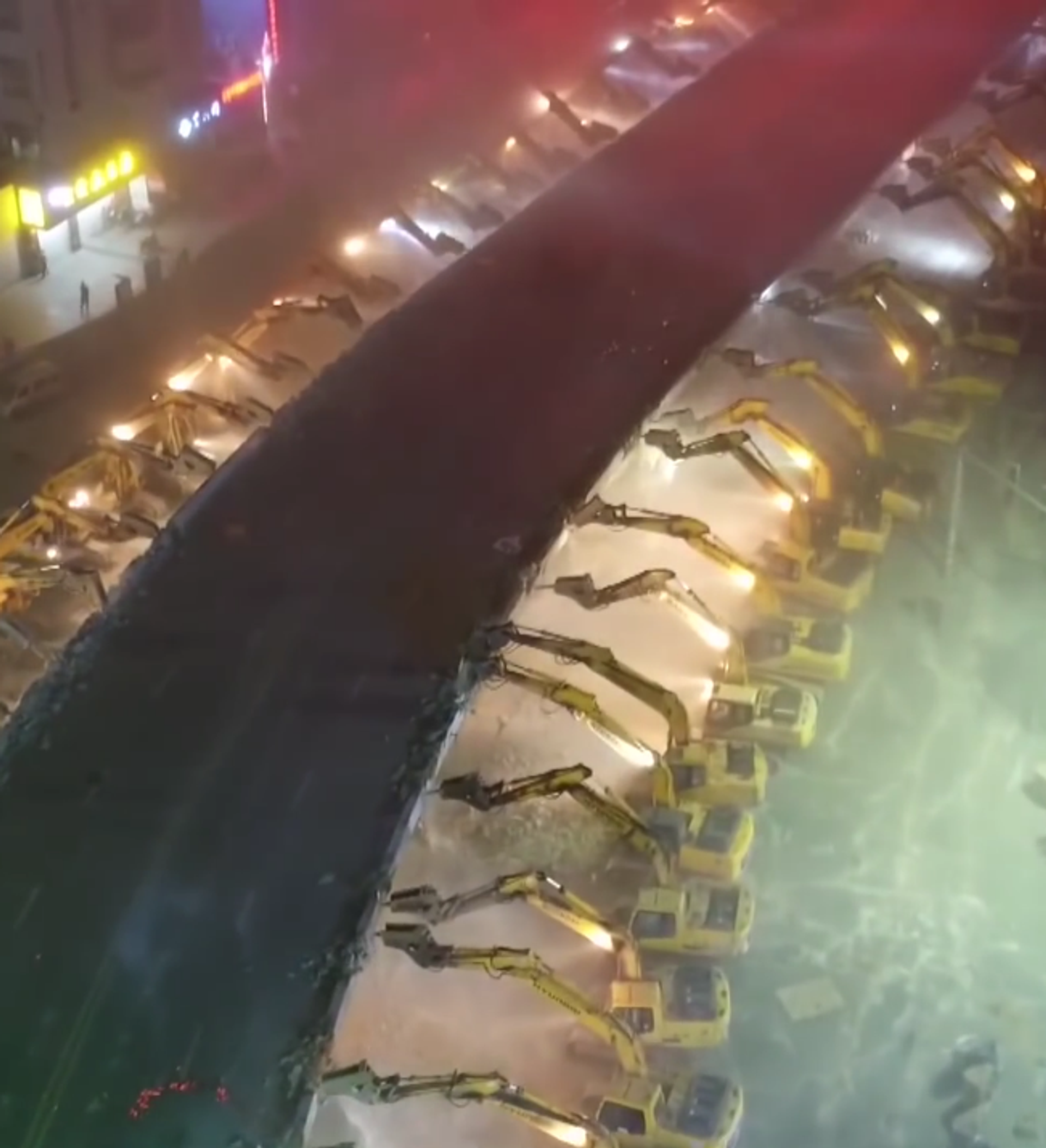 Merced a una planificación envidiable, las 116 excavadoras lograron demoler la construcción, que fue erigida hace 24 años, en apenas cuatro horas. El puente fue destruido para dejar espacio a la nueva línea de metro de la ciudad.
