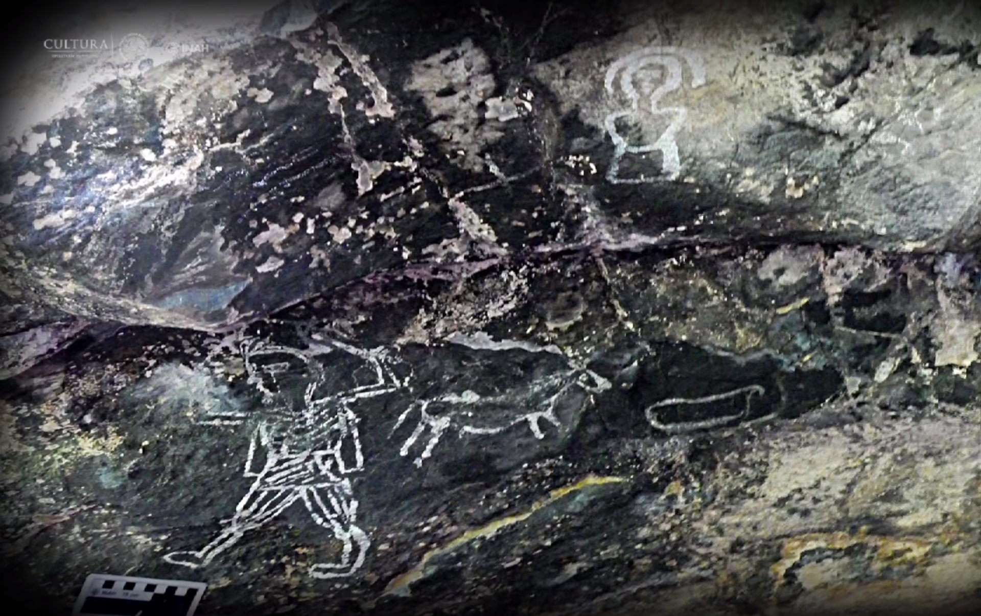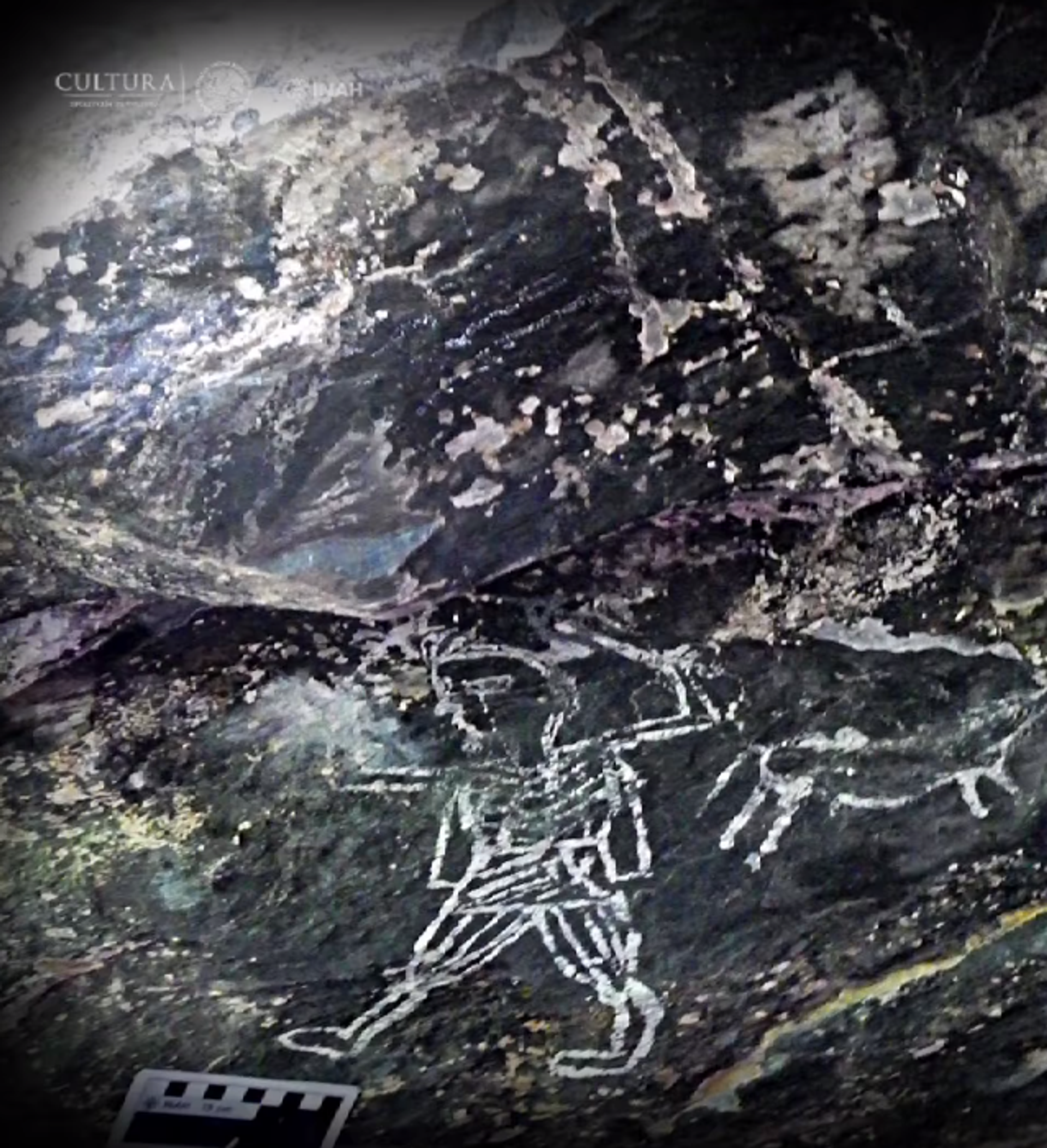 "Arqueólogos del Instituto Nacional de Antropología e Historia (INAH) descubrieron gráfica rupestre en la que se aprecia las que podrían ser las primeras representaciones de españoles pintadas por indígenas nahuas poco tiempo después de la conquista", comunicó la web oficial del Instituto.