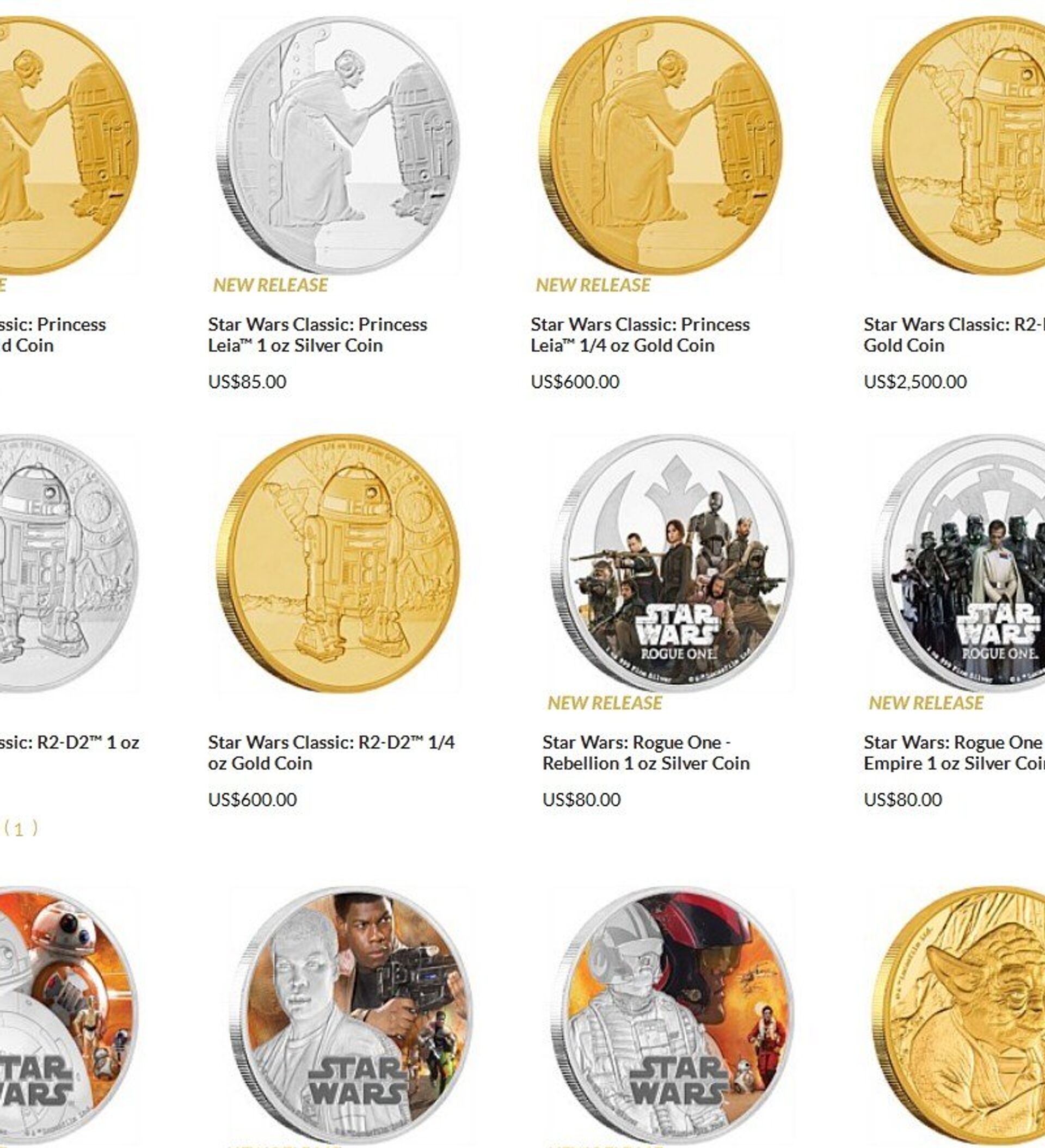 Igualmente, dos nuevas monedas han sido lanzadas para conmemorar el futuro estreno de Rogue One, un 'spin-off' de la serie original que será lanzado el 16 de diciembre de 2016.
