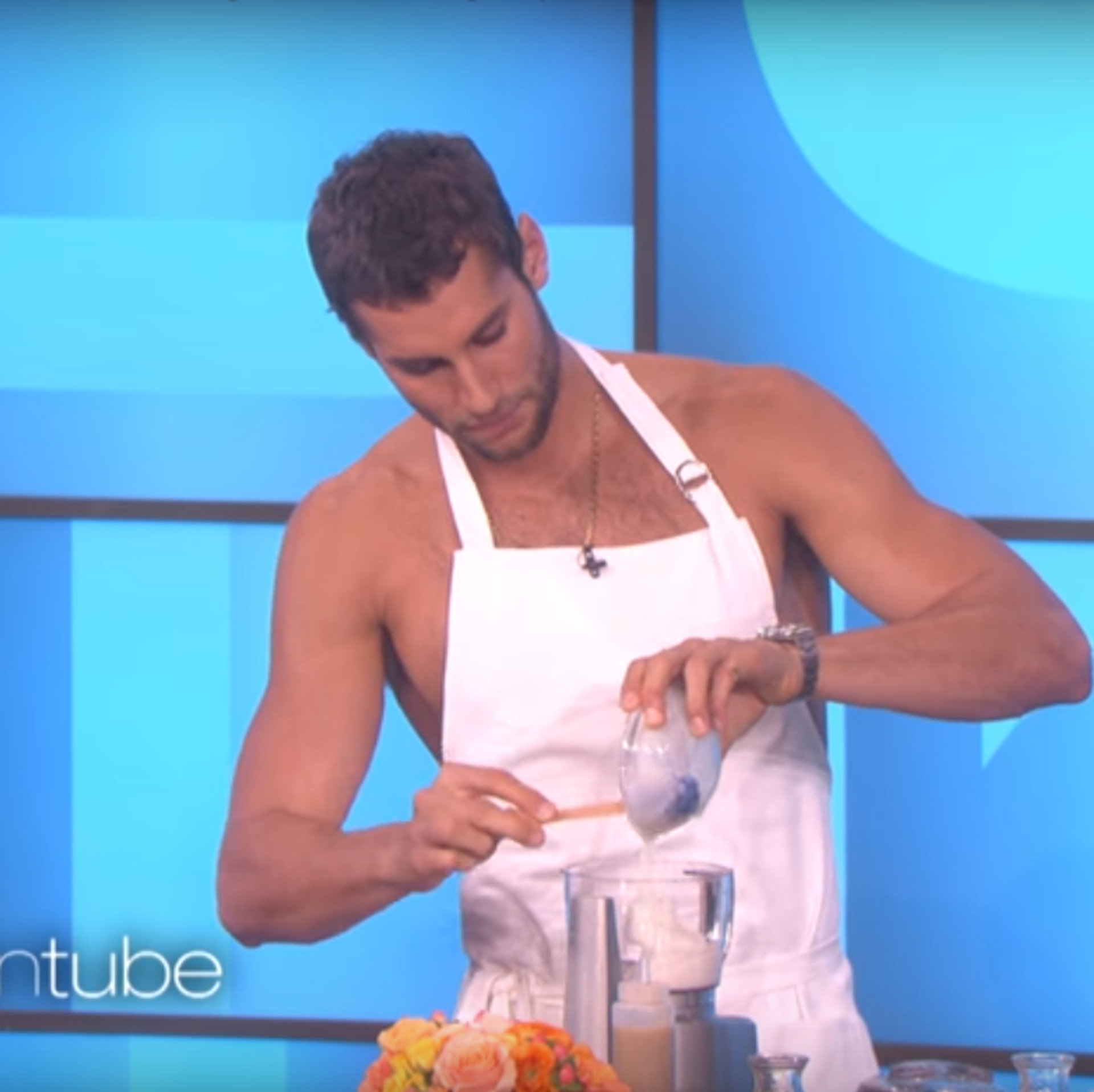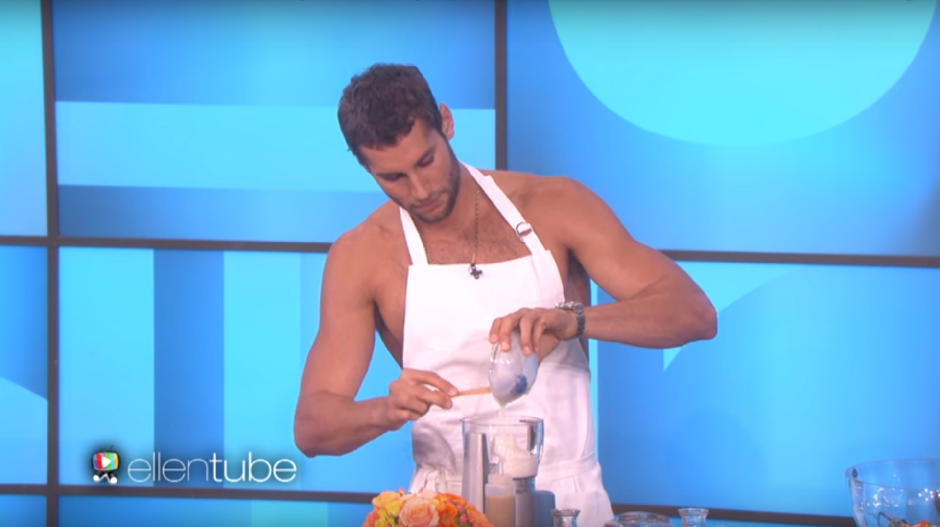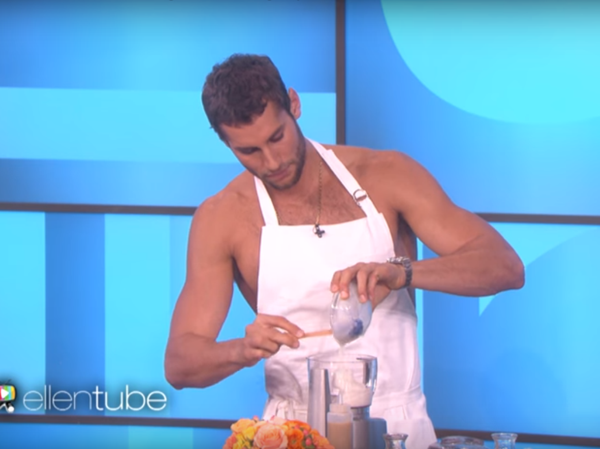 La conductora le preguntó cómo podía cocinar sin estar vestido. "Estoy muy cómodo. Lo hago todo el tiempo", contestó el cocinero. Aseguró también que fue nadador profesional, por lo que se siente muy cómodo estando con poca ropa.