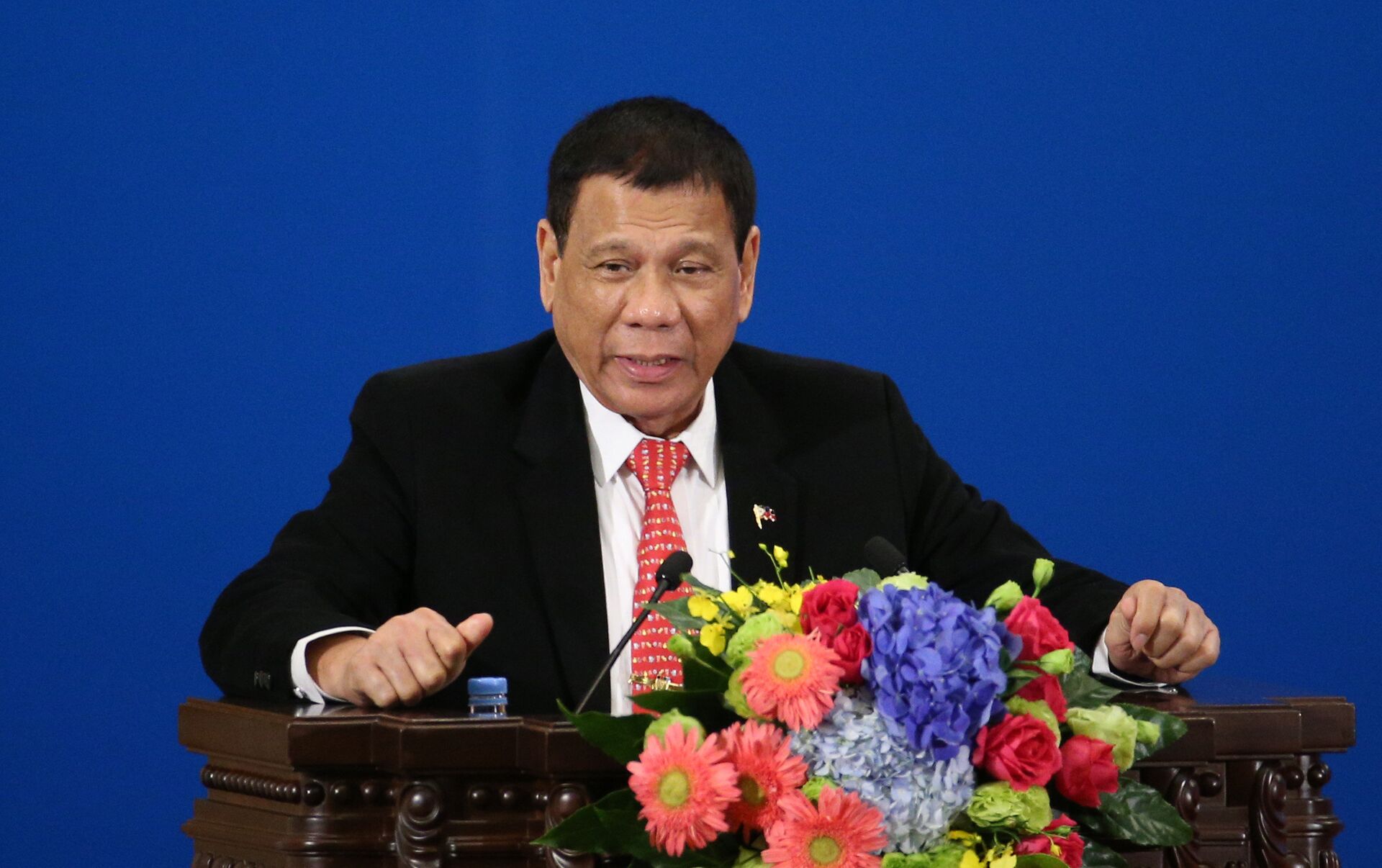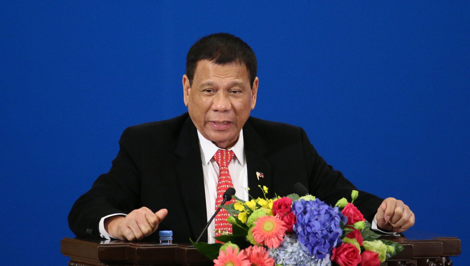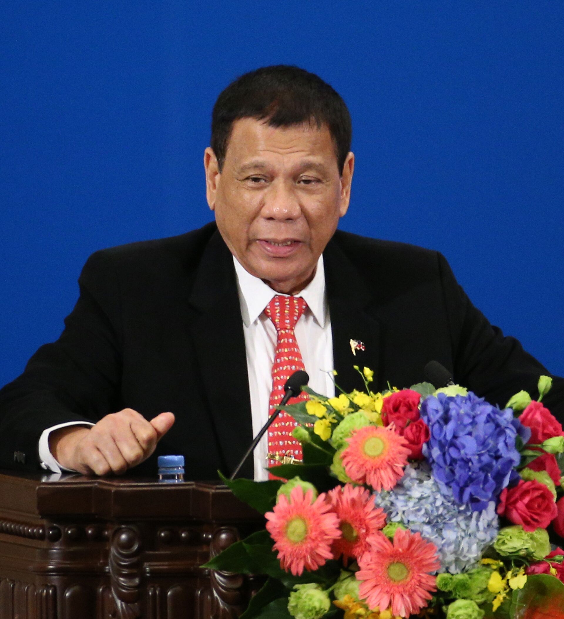 "Podría ir a Rusia para hablar con Putin y decirle que nosotros tres —Filipinas, Rusia y China—, estamos en contra de todo el mundo", indicó durante su visita a China.