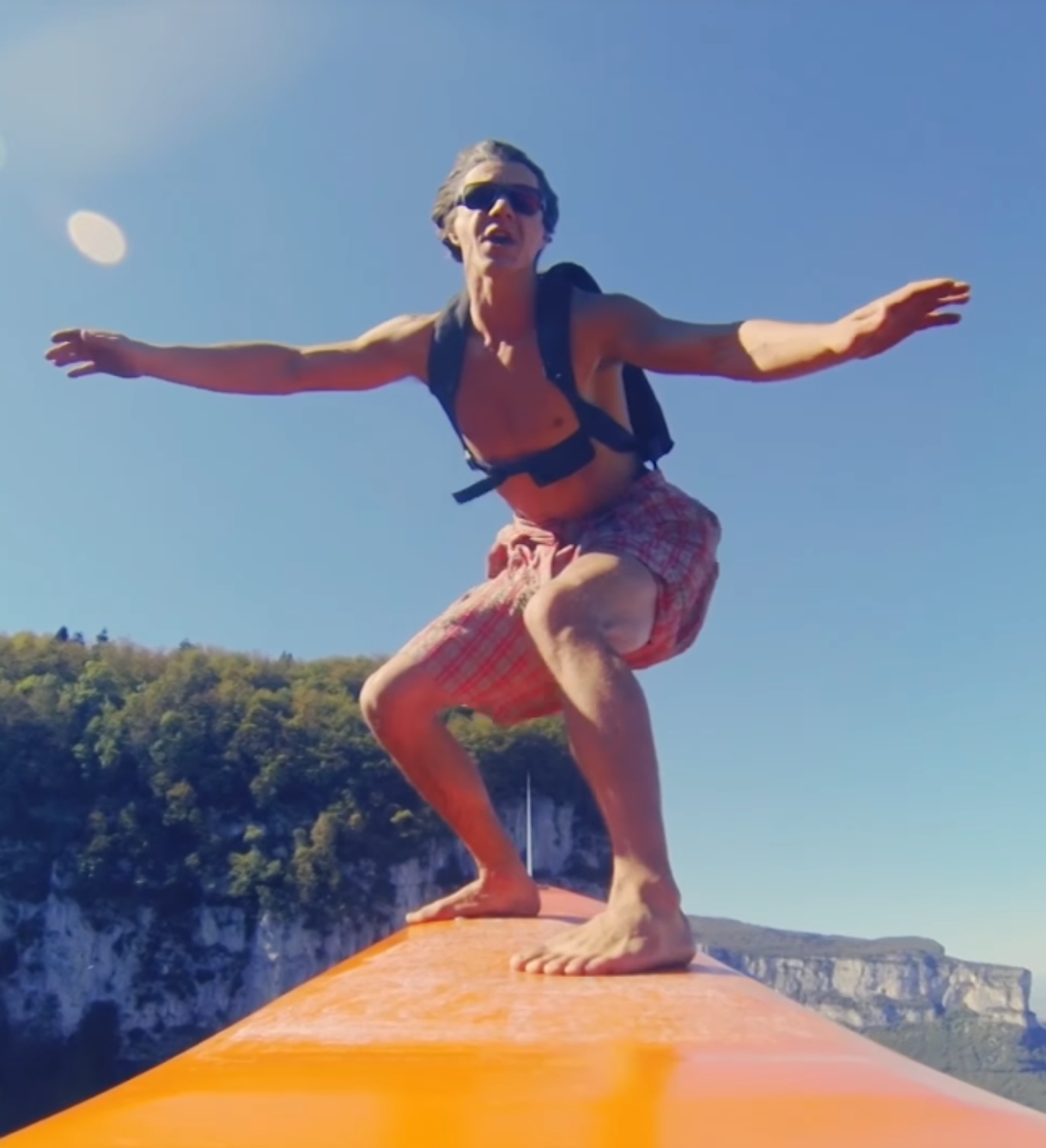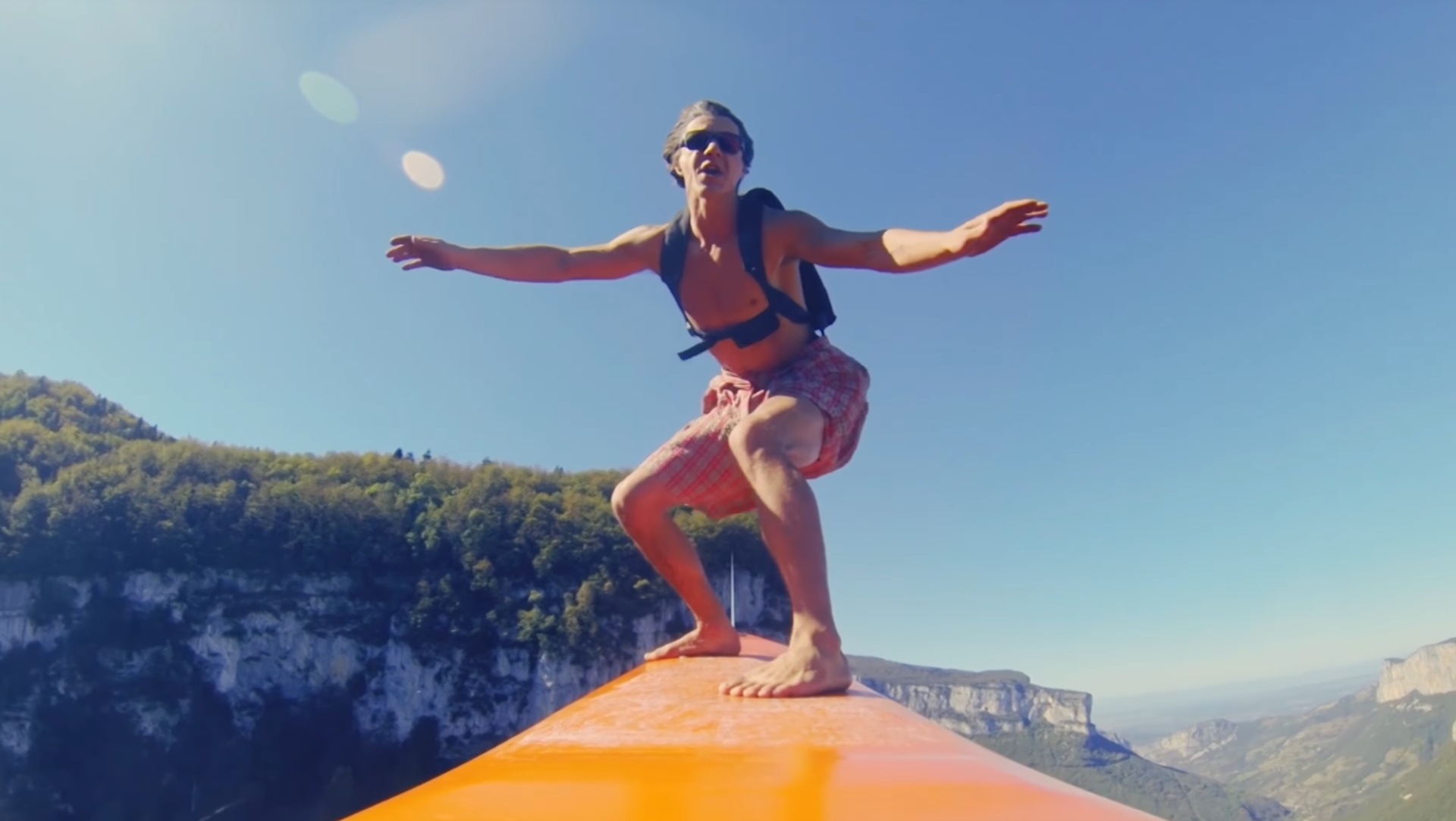Los deportistas pusieron su nueva creación a prueba en una pequeña competición, llevada a cabo en el pintoresco Macizo del Vercors, en los Alpes franceses. Los participantes practicaron el deporte disfrazados y, al final, tocaron instrumentos musicales colgando de los cables. ¡Vaya creatividad!
