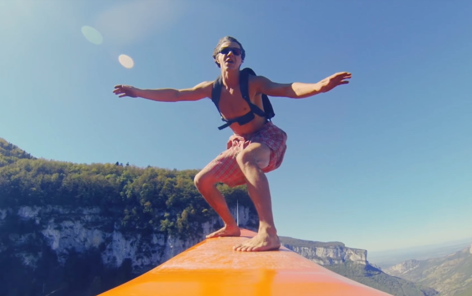 El grupo, bautizado como Franceses Voladores (Flying Frenchies, en inglés) unió un cable a una tabla de surf para construir un novedoso dispositivo capaz de surfear por los cielos a una velocidad que puede alcanzar hasta los 80 kilómetros por hora. Para completar la aventura, el 'deporte' termina con un salto en paracaídas.