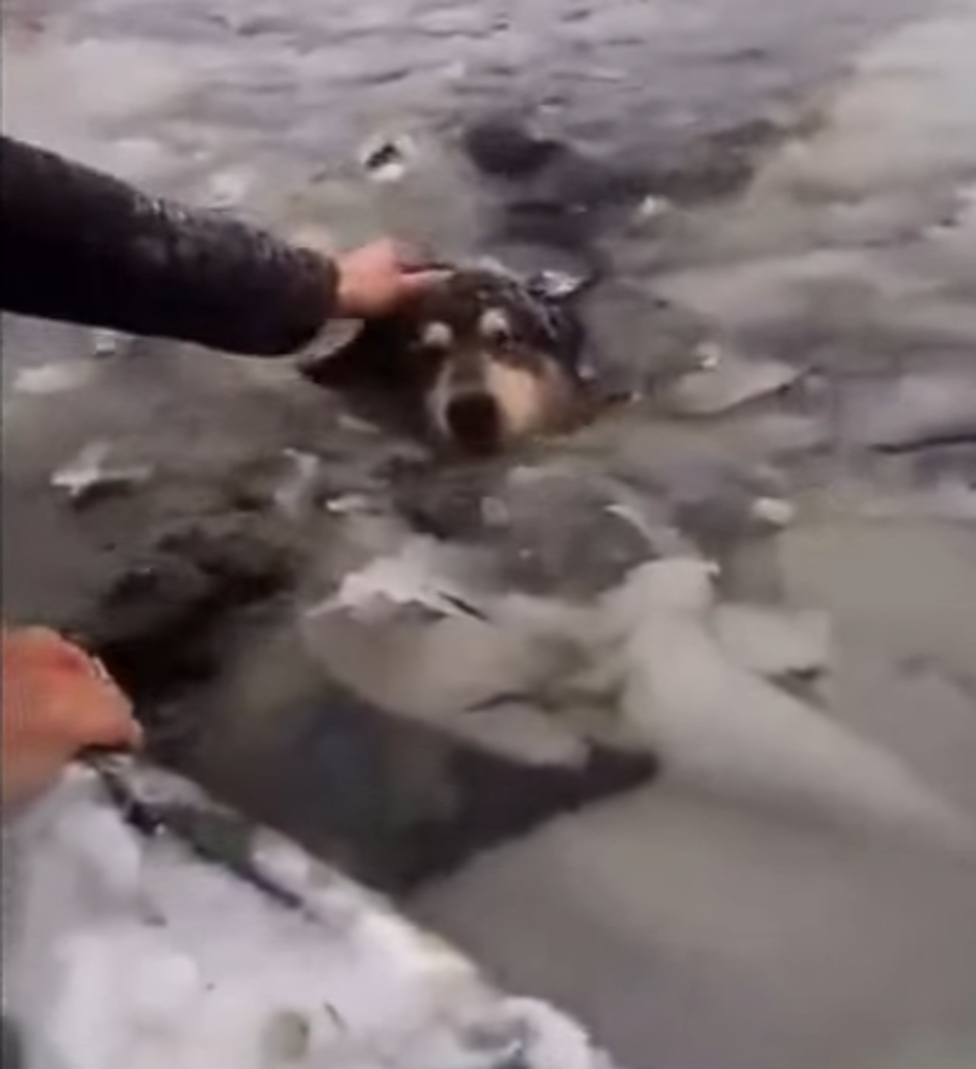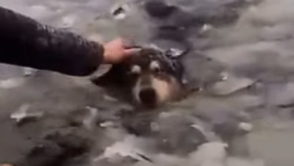 El animal quedó atrapado luego de romperse la delgada superficie congelada de un lago. Los jóvenes que caminaban por la región se dieron cuenta de lo ocurrido al escuchar los gemidos del perro y rápidamente empezaron la operación de rescate.