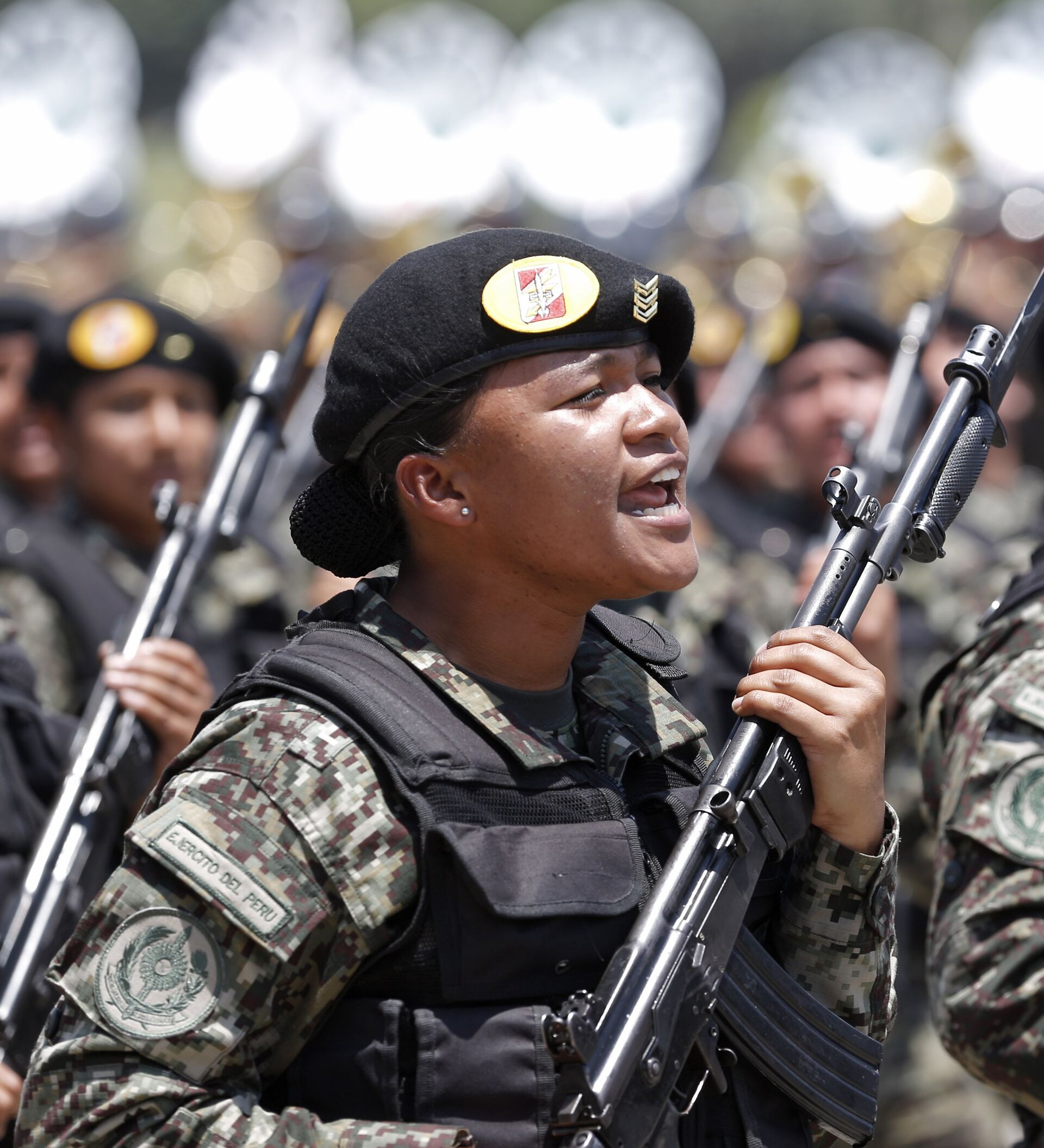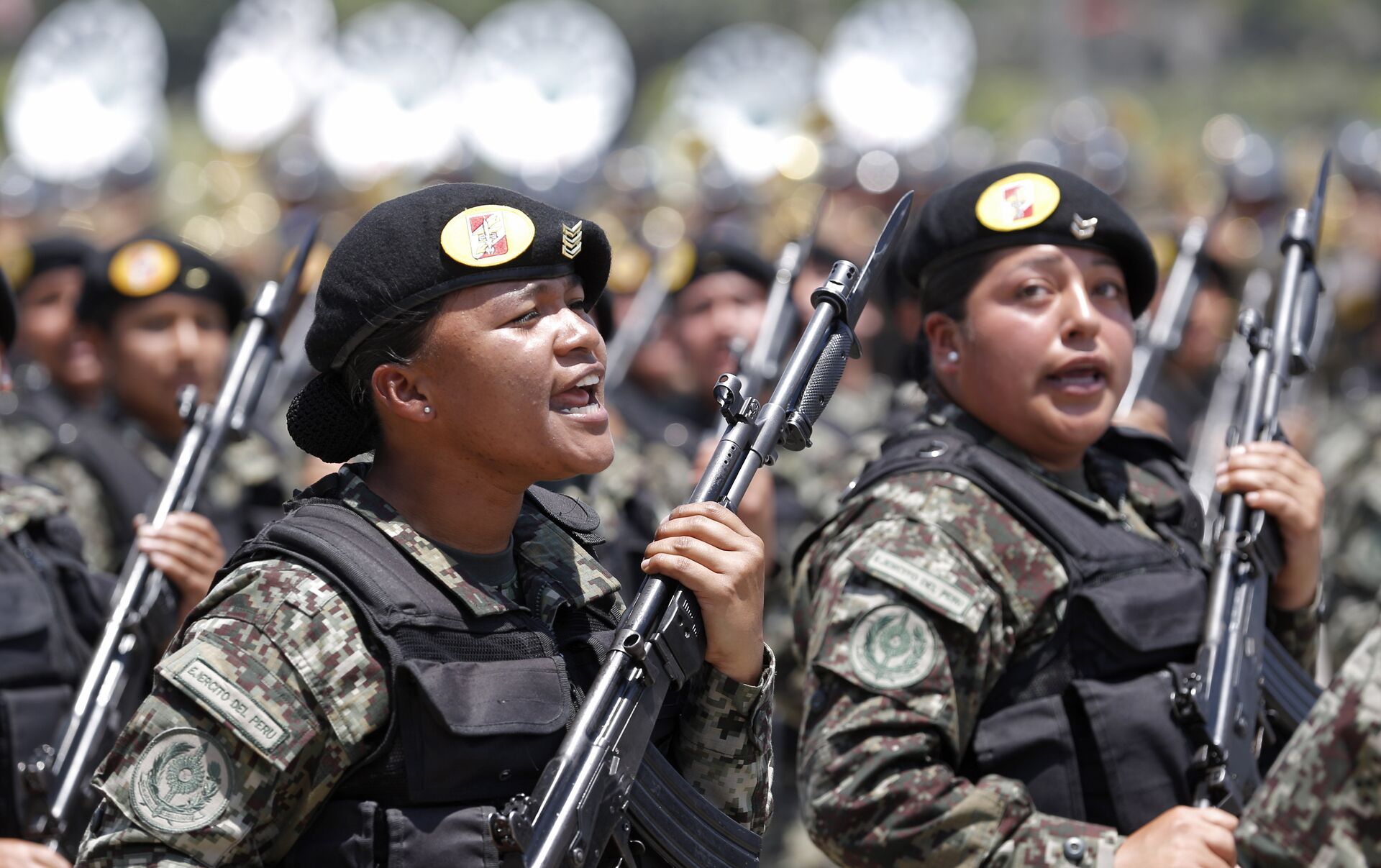 En Perú, el porcentaje es del 7% de oficiales y técnicas en el Ejército y del 9% para ambos rangos, también en la Marina. Para la Fuerza Aérea, las mujeres conforman el 12% de los técnicos y el 8% de los oficiales.