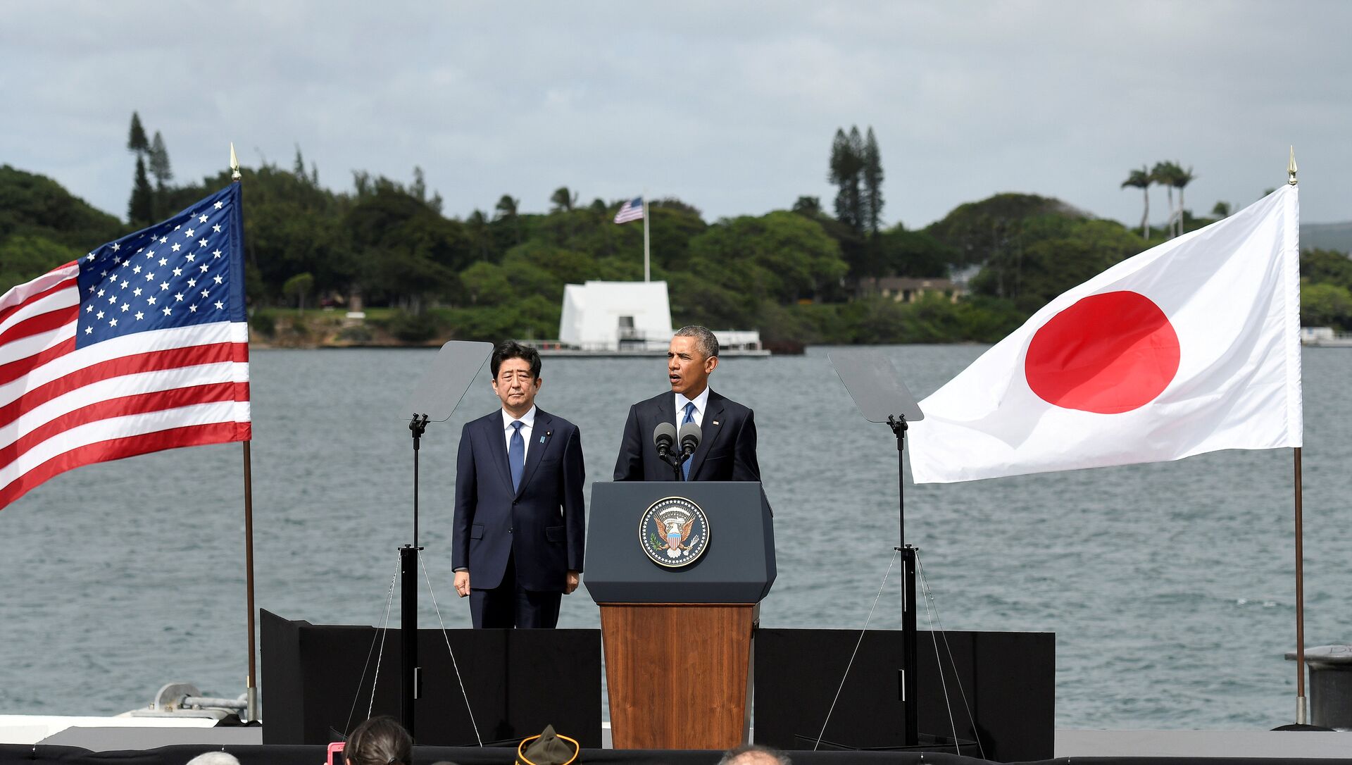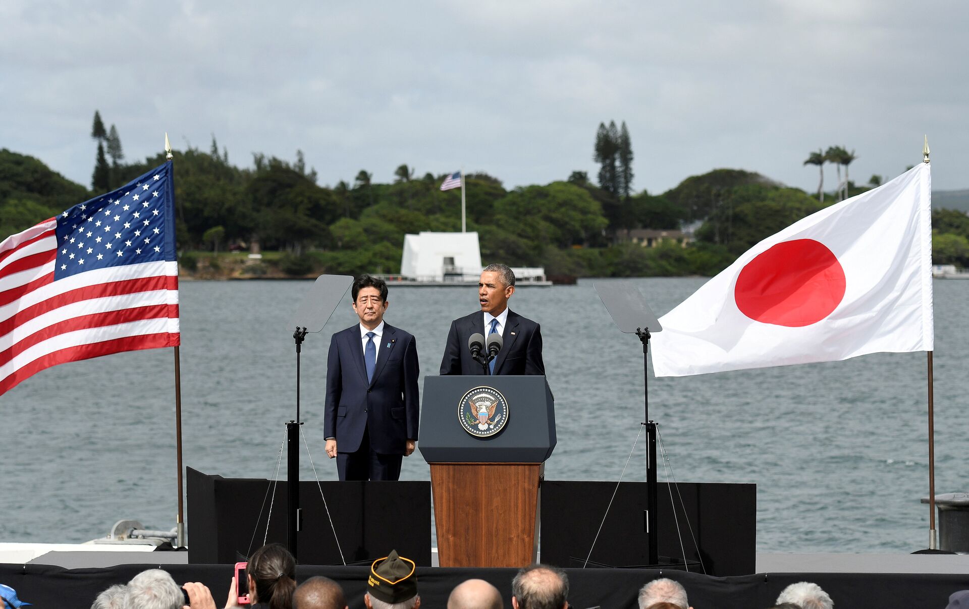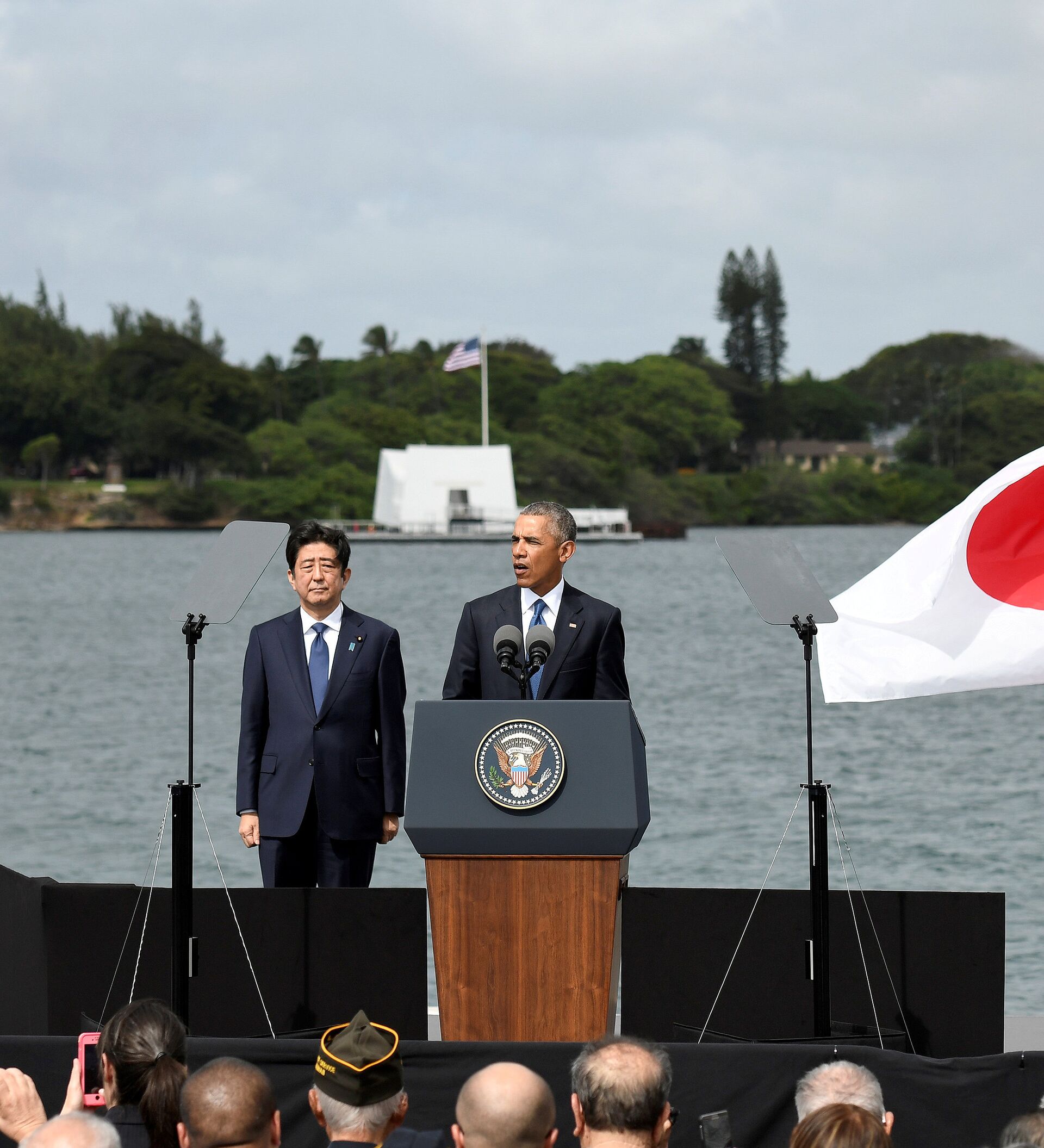 Al precederlo en el uso de la palabra, Abe ofreció condolencias a los deudos de todos los que murieron en el ataque japonés del 7 de diciembre de 1941 a Pearl Harbor, que precipitó el ingreso de EEUU a la Segunda Guerra Mundial.