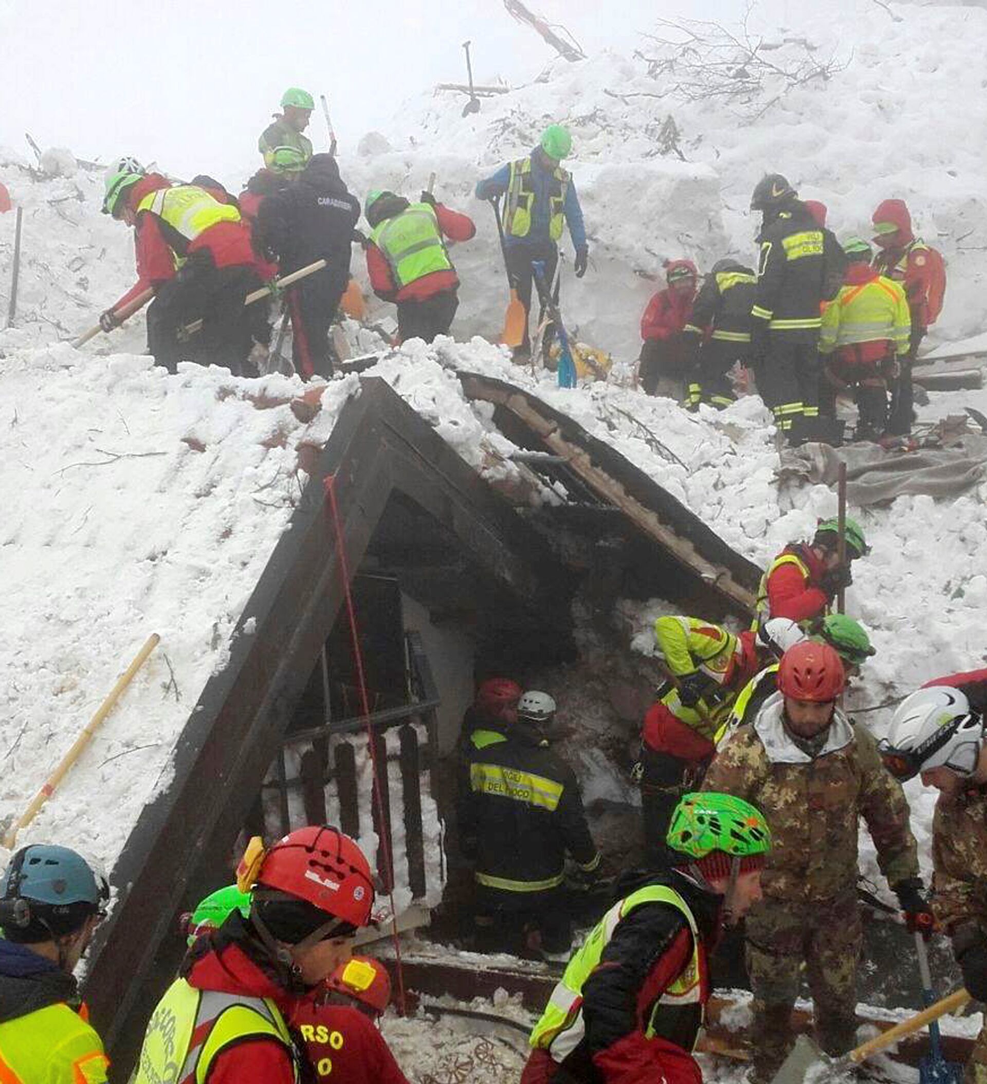En el Rigopiano se encontraban 40 personas –28 huéspedes, incluyendo cuatro niños, y 12 empleados– cuando un alud desencadenado por varios sismos descargó casi 120.000 toneladas de nieve, árboles y piedras sobre el hotel el pasado 18 de enero.