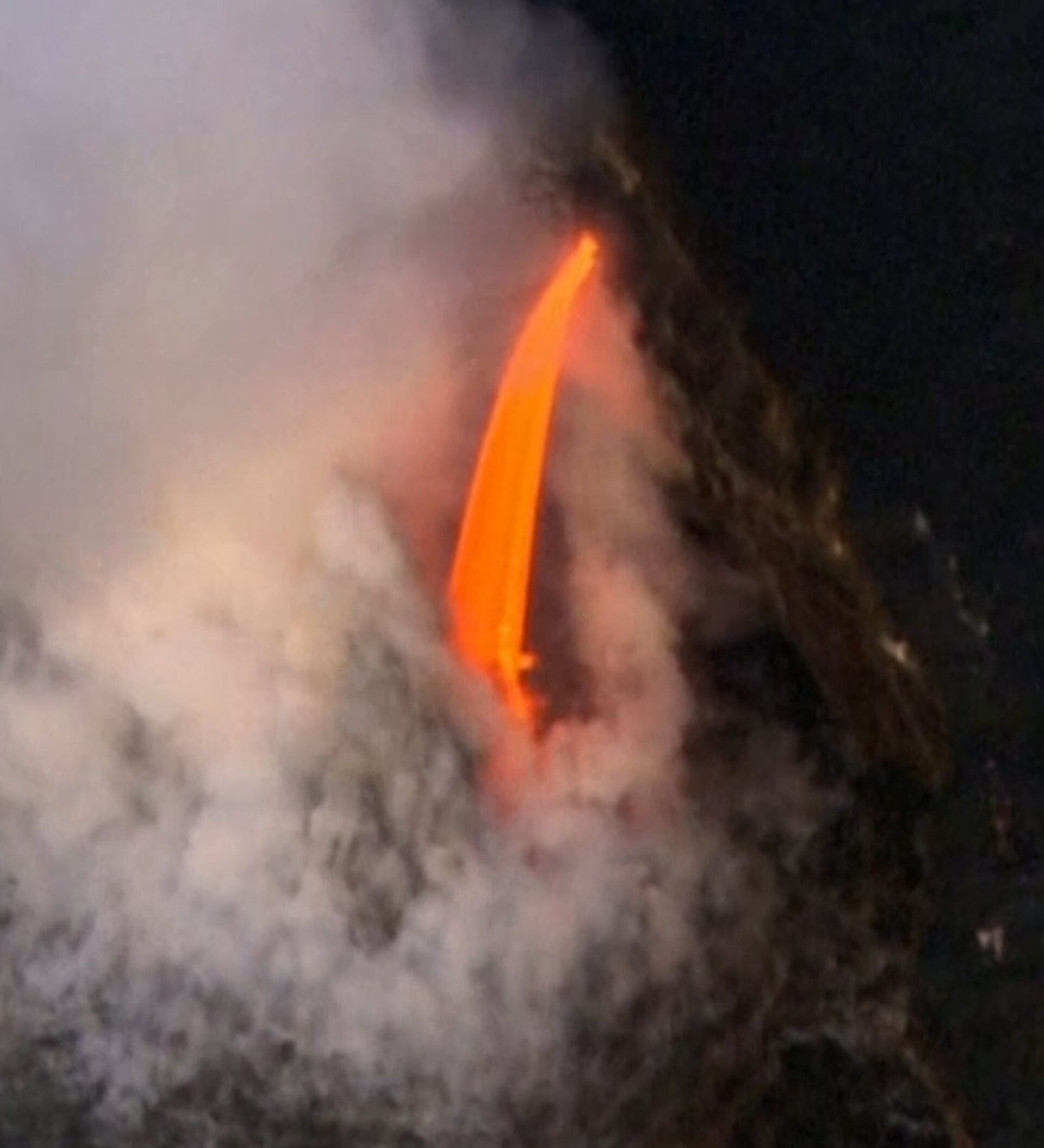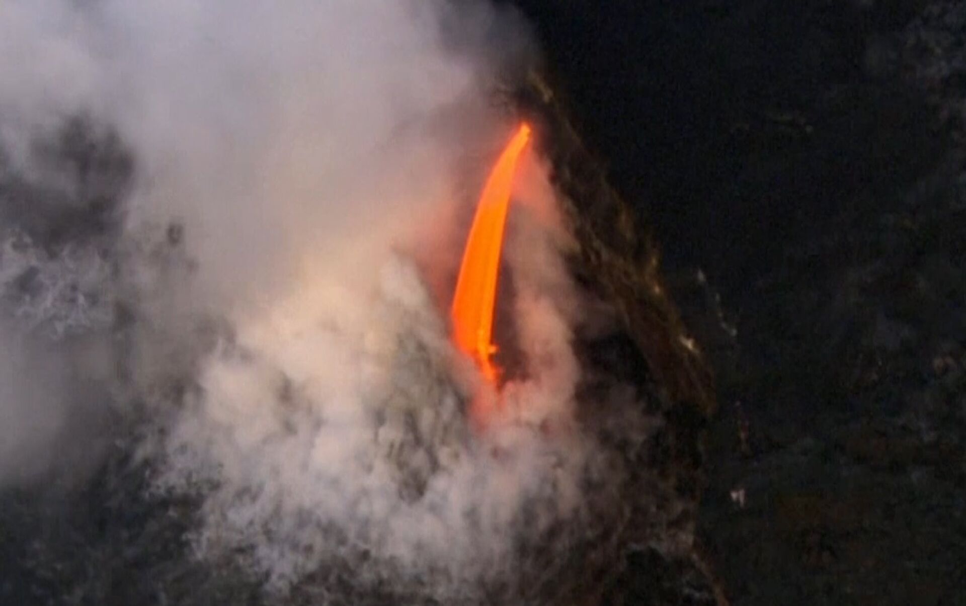 En la escalofriante grabación se puede ver cómo los torrentes de lava —acompañados por columnas de ceniza y gas— caen del volcán a las aguas del océano Pacífico.