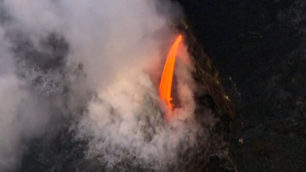 Un helicóptero ha grabado la salida de la lava del volcán Kilauea, ubicado en el Parque Nacional de los Volcanes de Hawái, en EEUU. 11.02.2017, Sputnik Mundo
