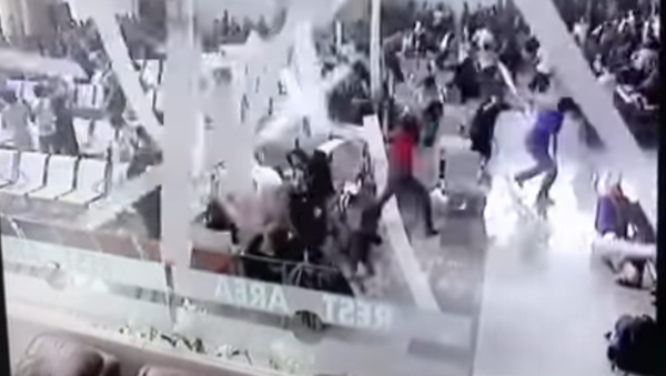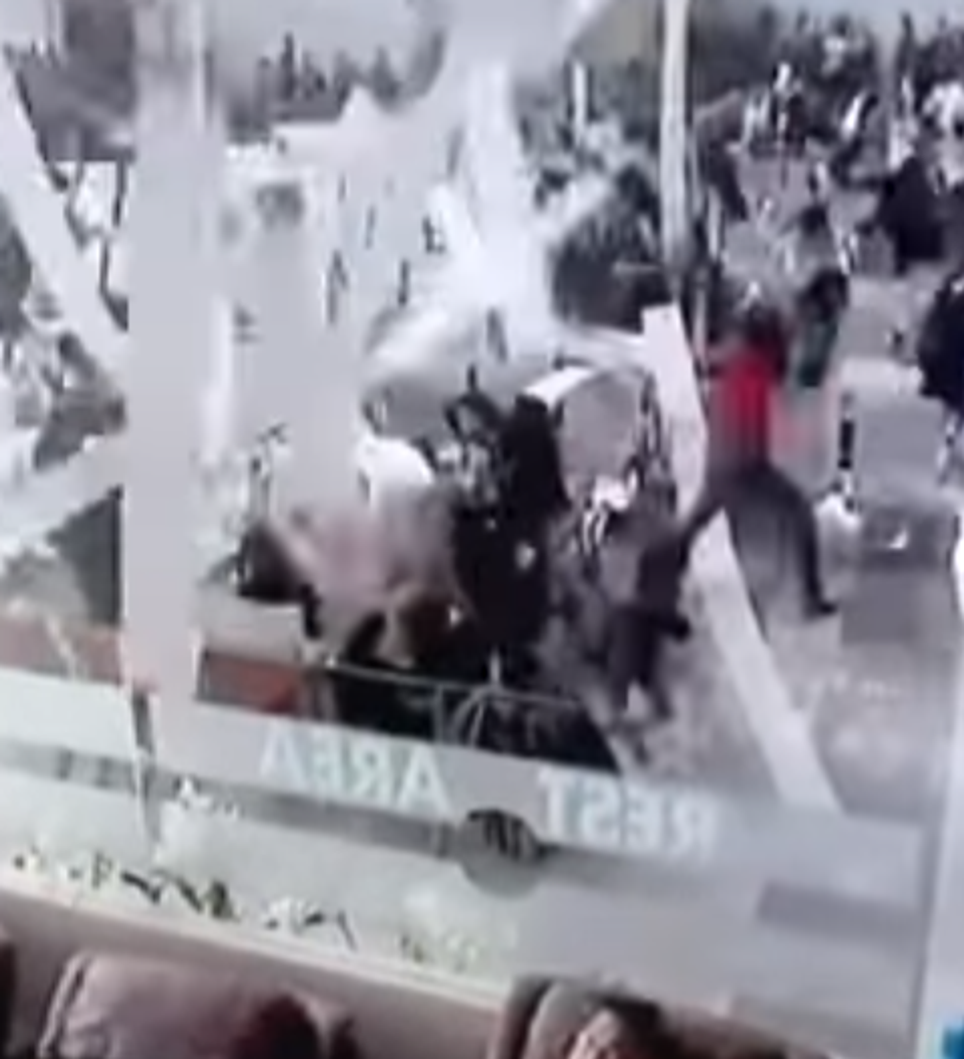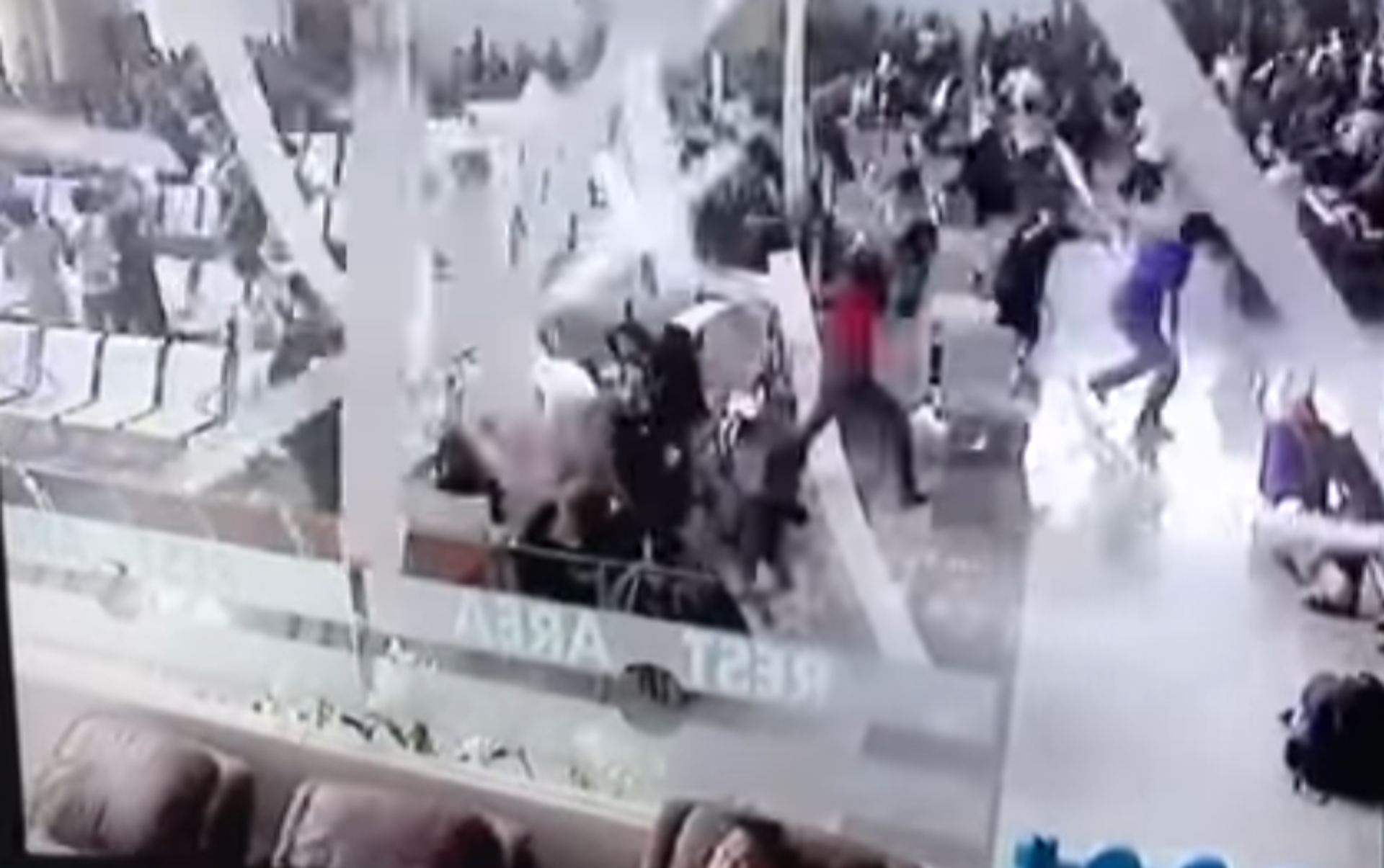 La grabación de las cámaras de vigilancia muestra cómo las personas se dispersan en diferentes direcciones tratando de esquivar los escombros.