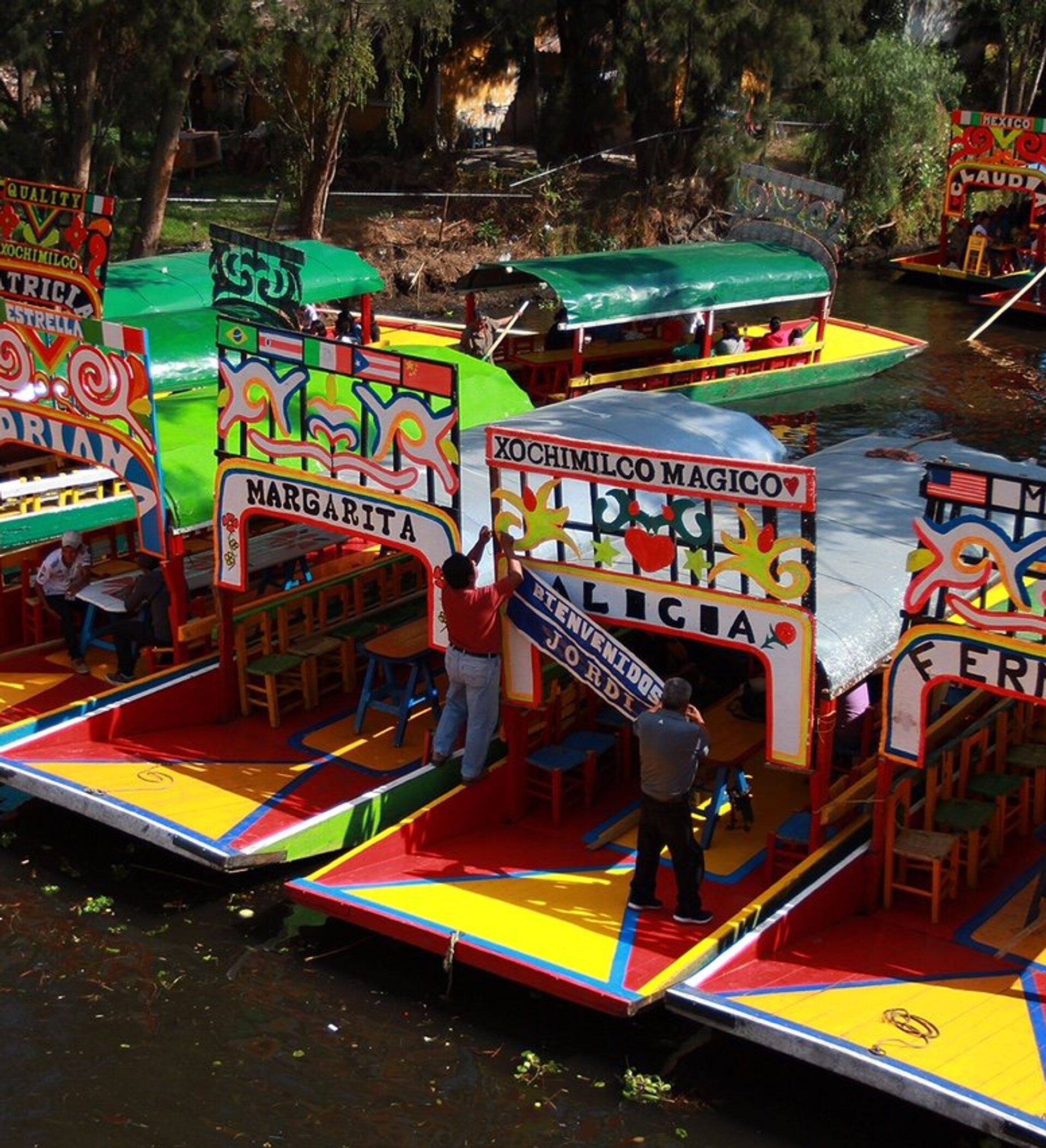 Finalmente son los dueños de las trajineras los que deciden el color en que se deben pintar sus embarcaciones, siendo el azul, el rojo, el amarillo y el verde los más tradicionales.