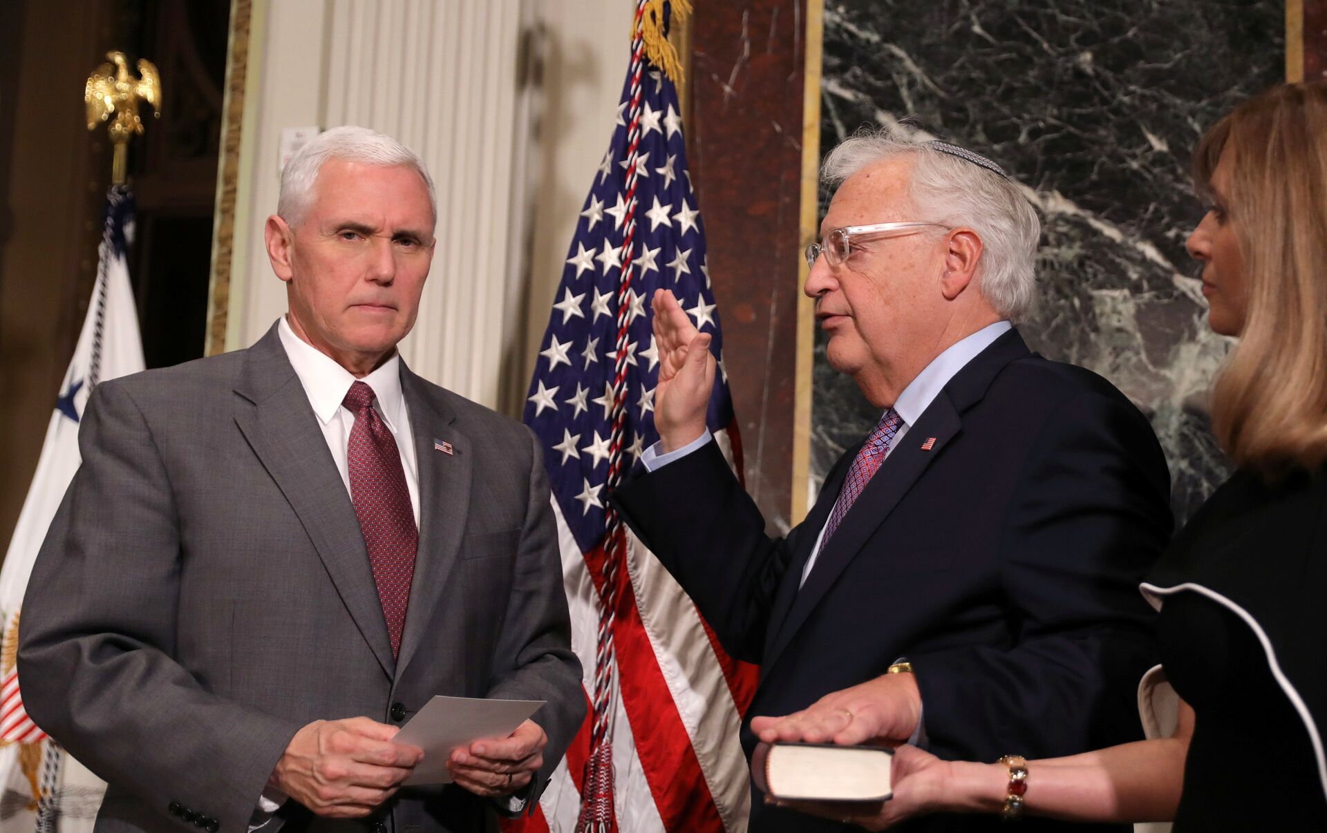 Al jurar su cargo, Friedman agradeció al presidente de EEUU, Donald Trump, "su liderazgo y amistad" y que lo hubiera escogido para desempeñar el cargo diplomático.