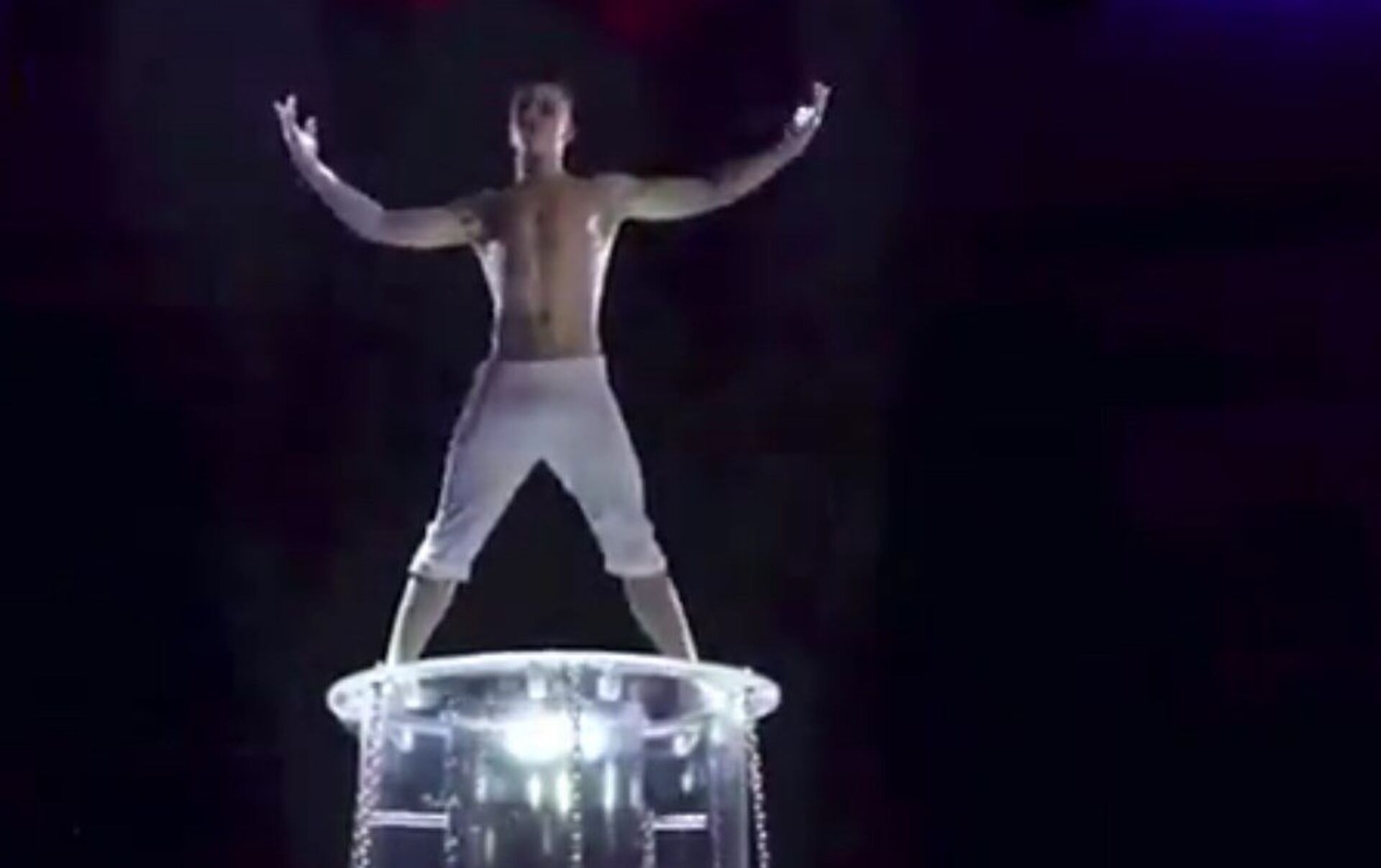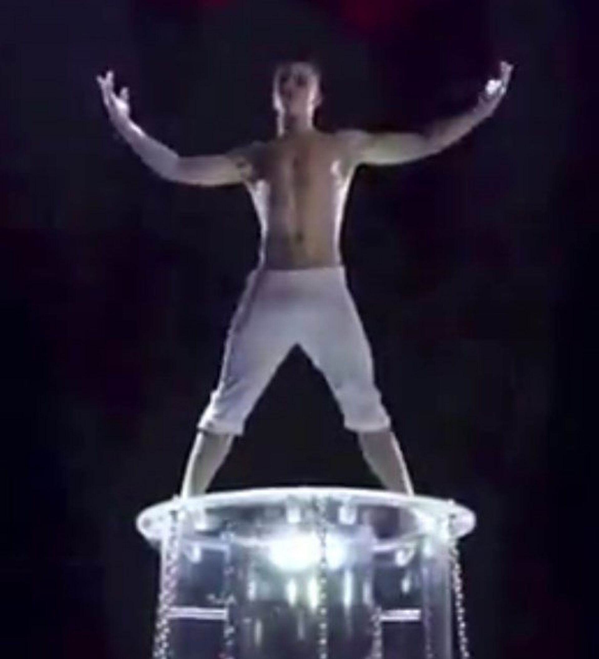El joven, después de ser amarrado con esposas y cadenas, logró escapar con vida de un tanque de vidrio lleno de agua.