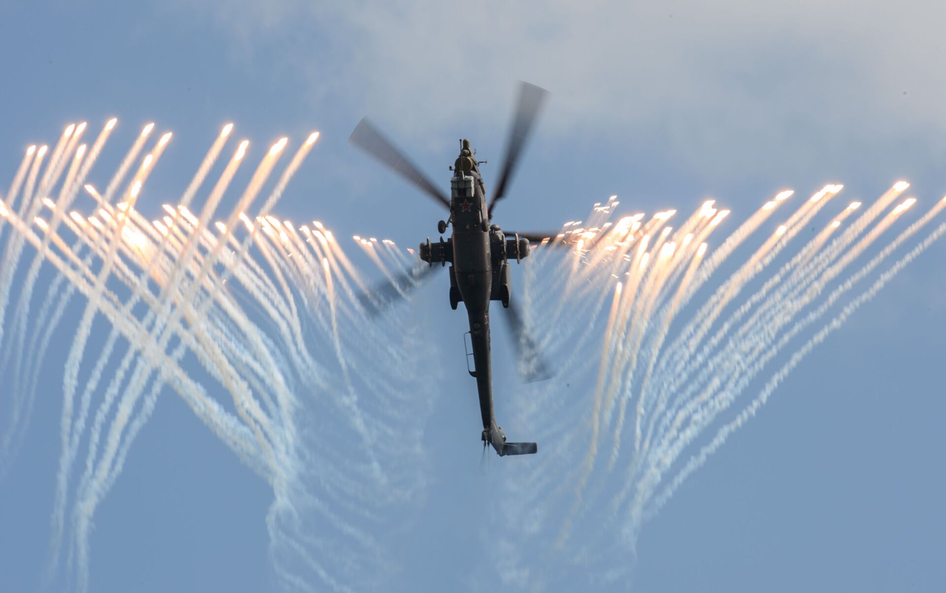 Bérkuti es el nombre del único grupo de alto pilotaje de las Fuerzas Aeroespaciales de Rusia capaz de volar en helicópteros de ataque. Disfruta de sus piruetas... 12.04.2017, Sputnik Mundo