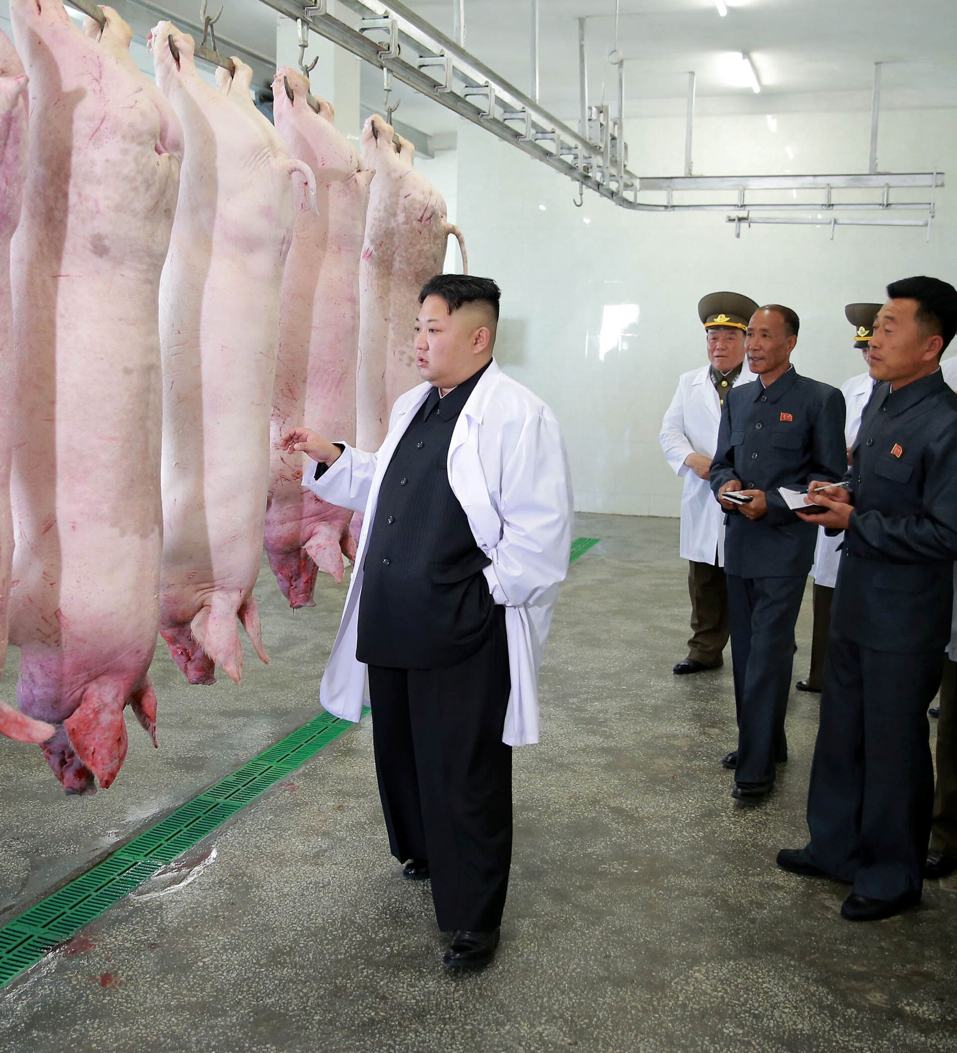 El mandatario expresó su esperanza en que la fábrica produzca más cerdo procesado para los pilotos norcoreanos. Por último, Kim se tomó una foto con los empleados de la compañía.