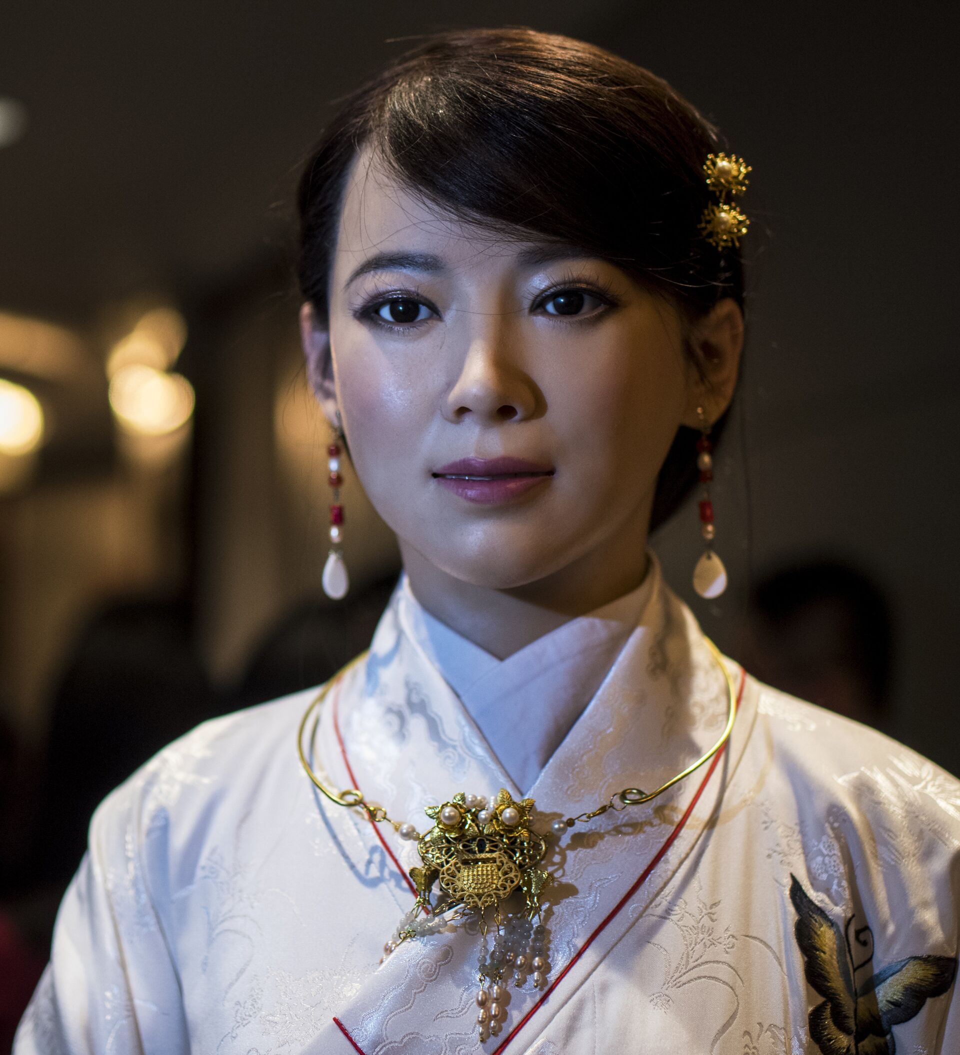 Jia Jia es una robot con el pelo largo y negro, la cual usa ropa tradicional china. Se le considera una de las robots humanoides más realistas del mundo.