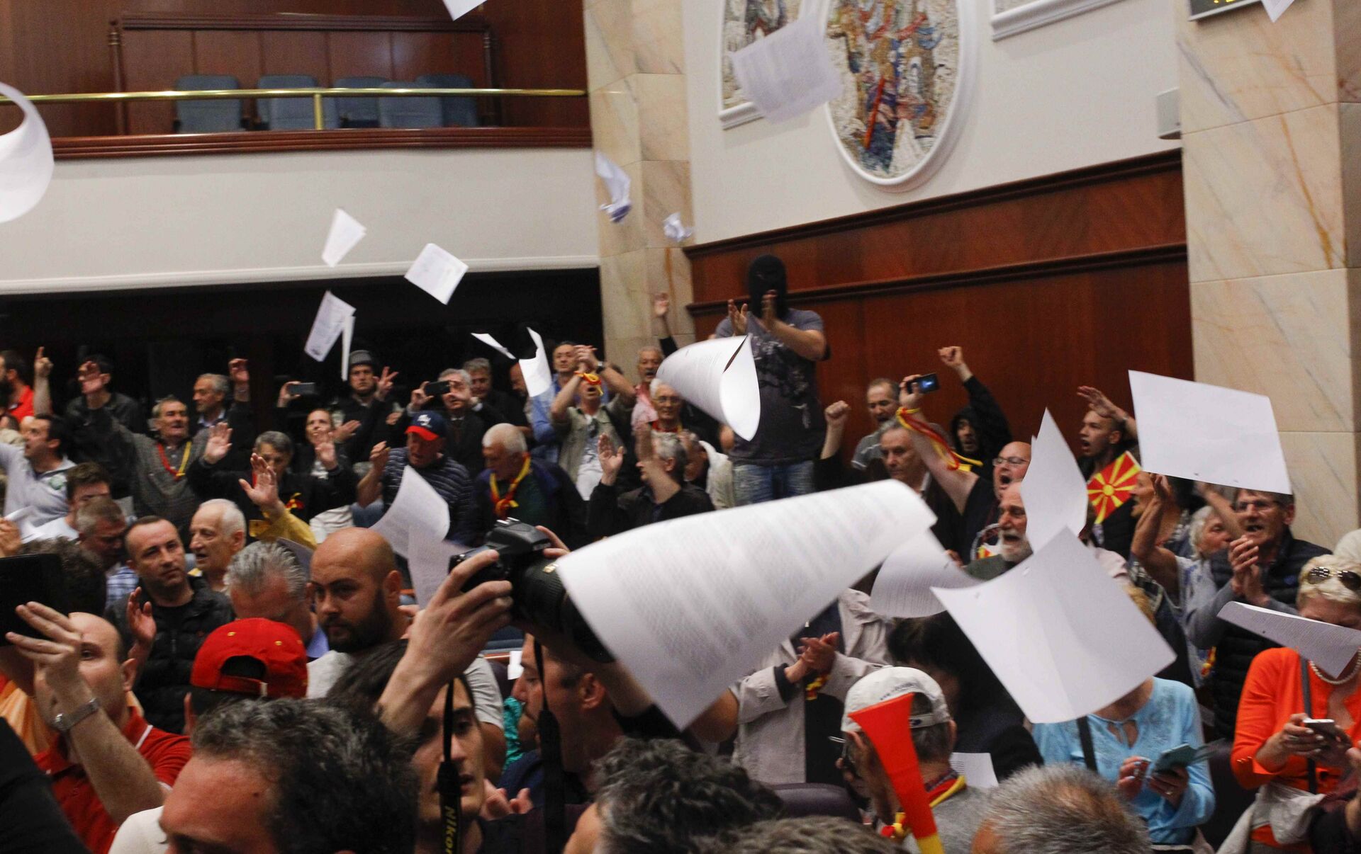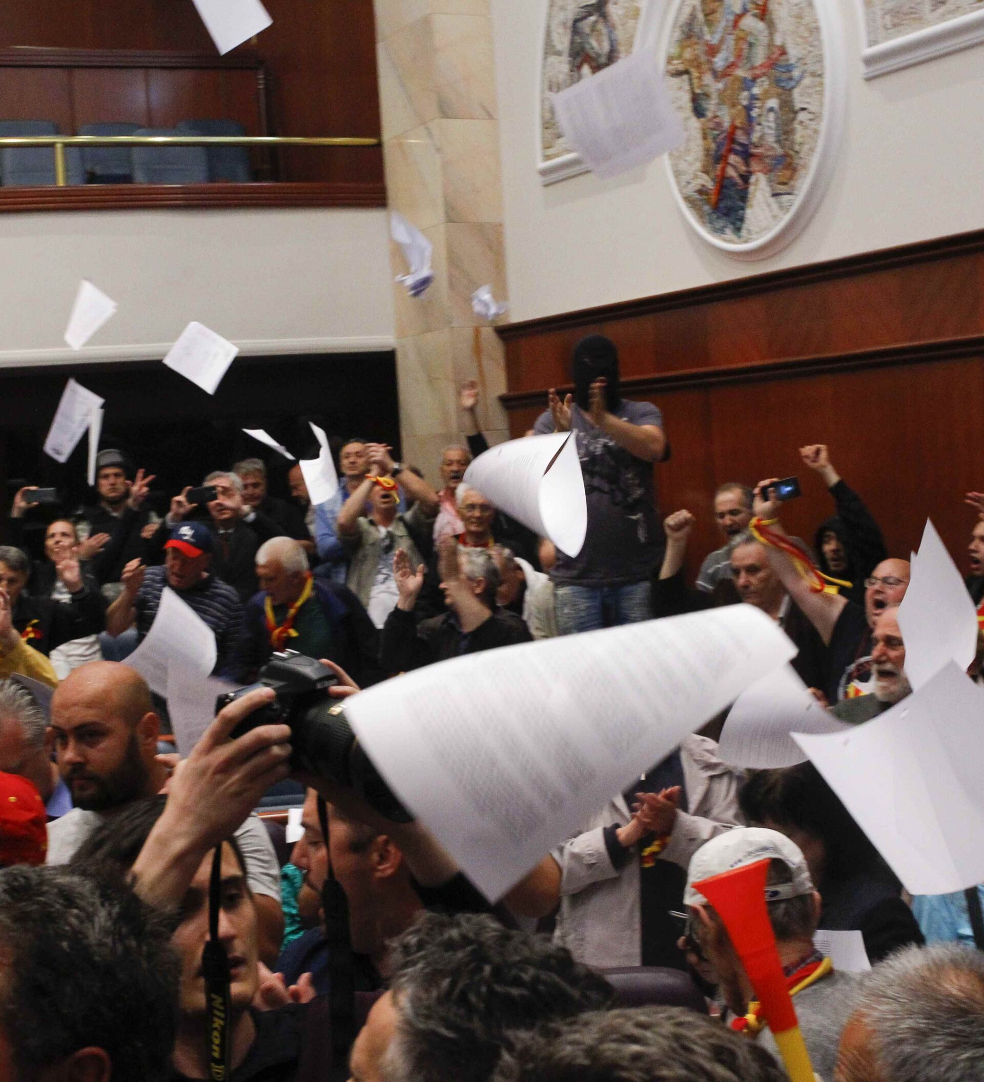 El 27 de abril la elección de Talat Xhaferi, de la minoría albanesa, como presidente del Parlamento de Macedonia provocó protestas multitudinarias en la capital Skopje y ataques de los manifestantes contra la sede parlamentaria.